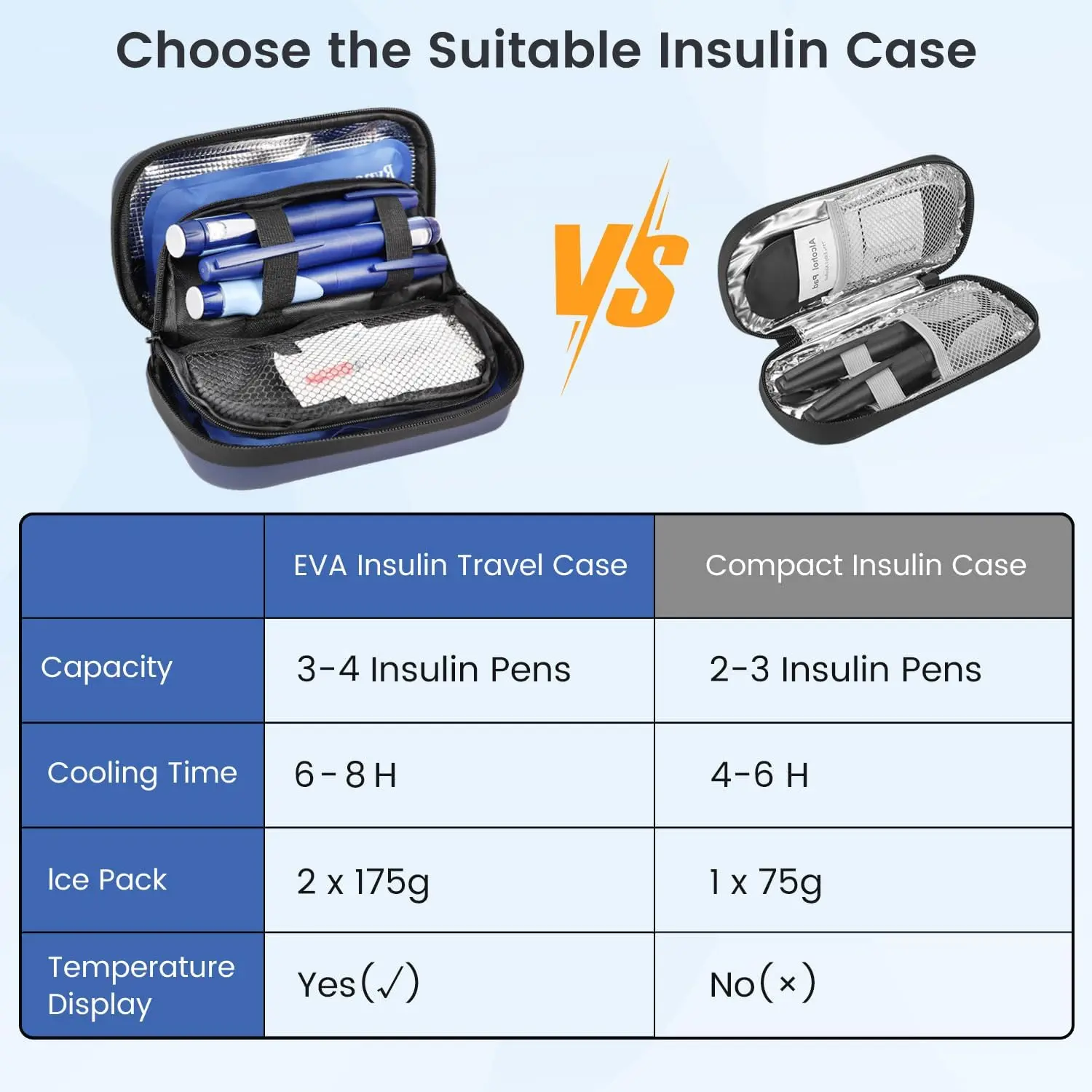 Large Insulin Cooler Travel Case - TSA Approved Medication Diabetic Cooler for Travel with Fahrenheit Temperature Display, Includes 2 Reusable Ice Packs, Essentials for Diabetics (8.1” x 5.1” x 3.34”)