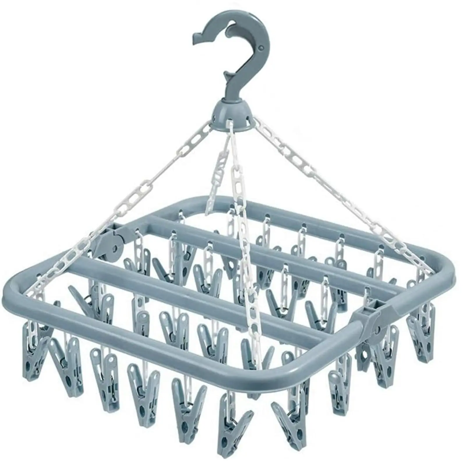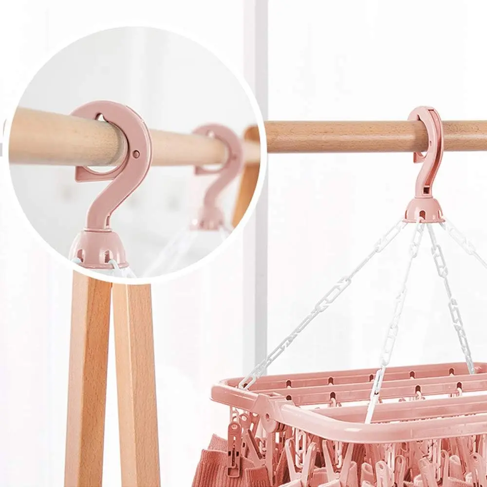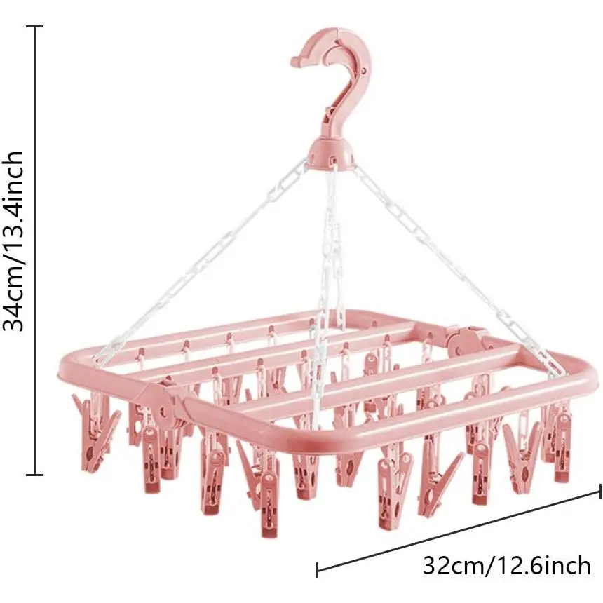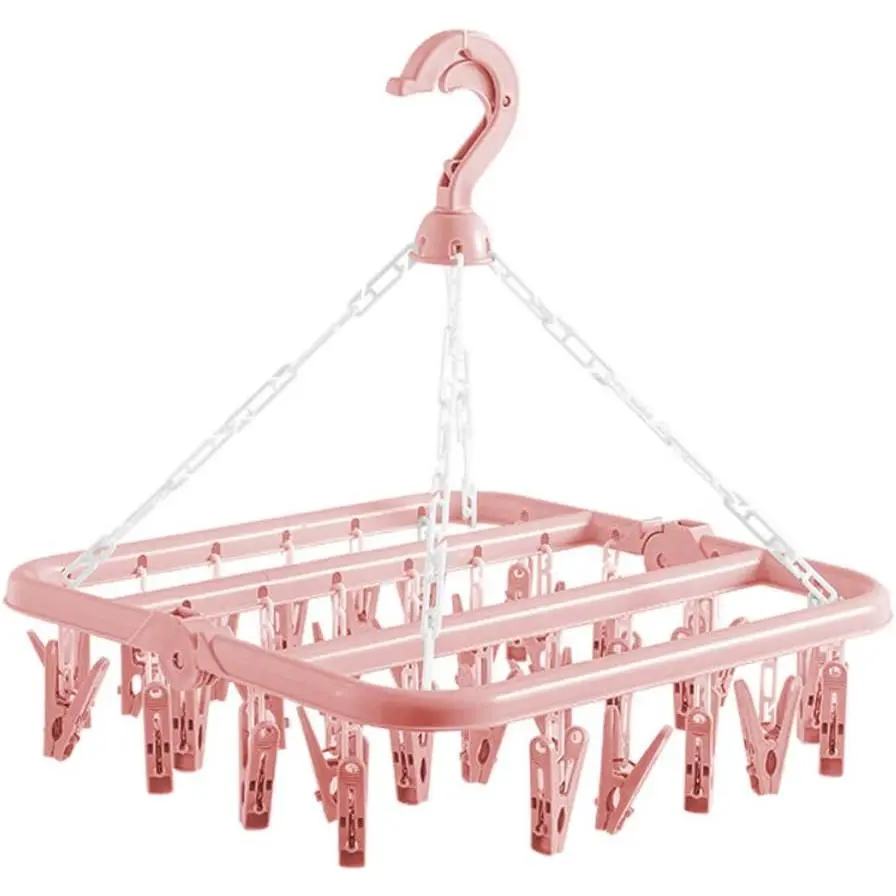 Clothes Drying Hanger with 32 Clips and Drip Foldable Hanging Rack (Light Pink)