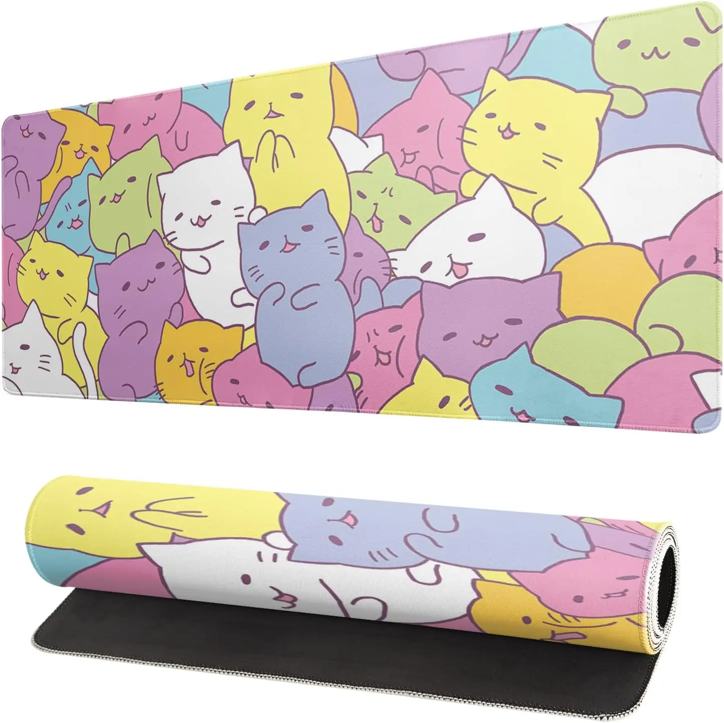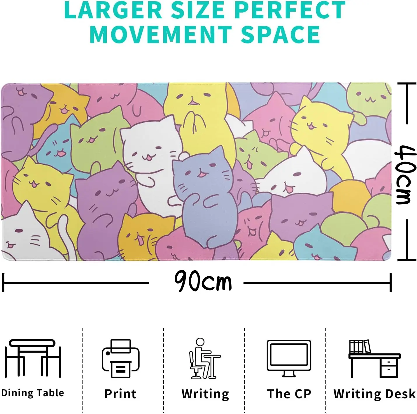 Cute Cat Kawaii Kittens Gaming Mouse Pad,Anime Cute Cat Gaming Mouse Pad Colorful Large Desk Mat,40x90cm Mousepad Extended Non-Slip Rubber Base Keyboard Mat with Stitched Edges for Desk Home Office