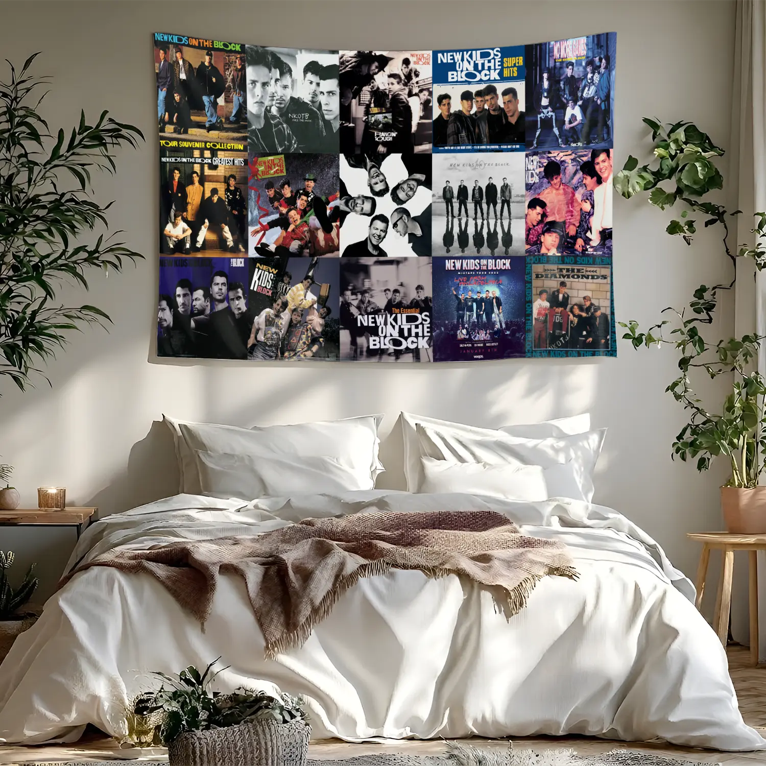 Vintage 90s NKOTB Album Collection Tapestry, Retro Boy Band Wall Hanging Decor, Classic Pop Music Art Banner, Bedroom Wall Art, Gift for Fans