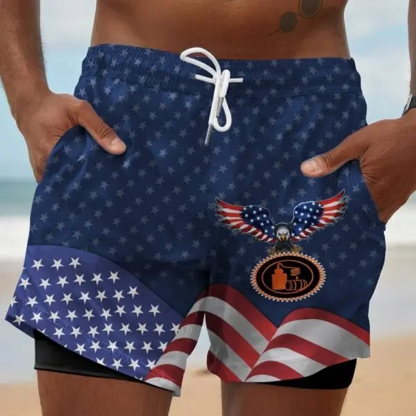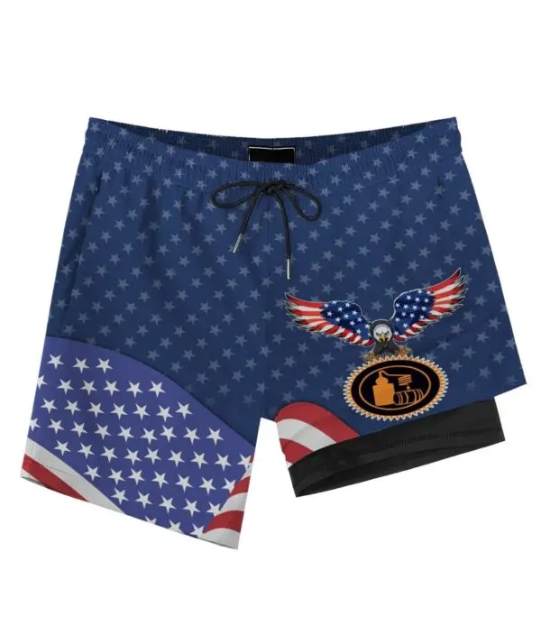 American Eagle Tito’s Compression Liner Swim Trunks – Patriotic Vodka Lover 2-in-1 Swim Shorts, USA Flag Summer Beach Shorts with Built-in Liner, Pool Party Vacation Outfit for Men