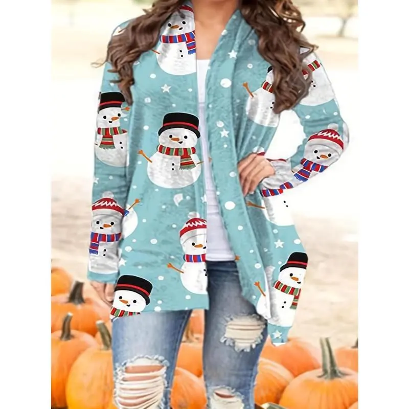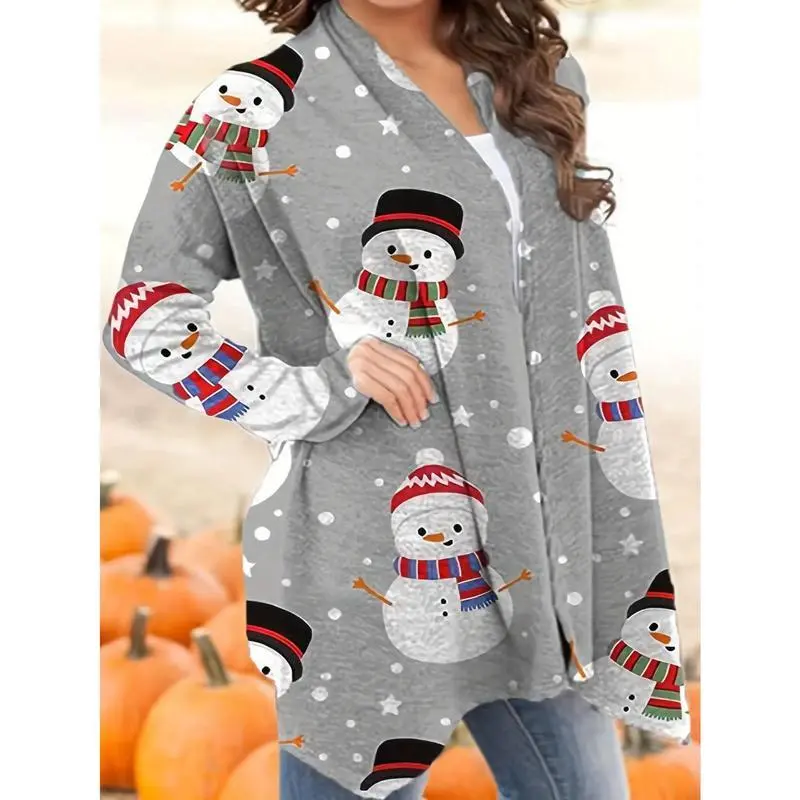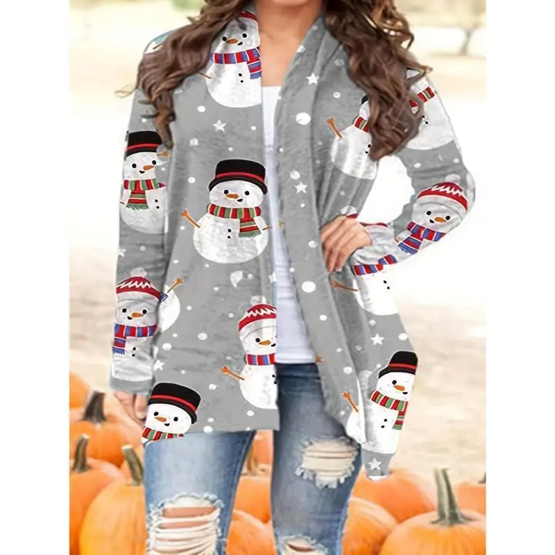 ChristmasCardigan-SantaClausSnowflakePrintSoftStretchLongSleeveOpenFrontSweater,MachineWashableComfortableCasualWinterWear,EssentialforHolidayPartiesandFamilyGatheringsKnitwearTopsWomenswearLightGray