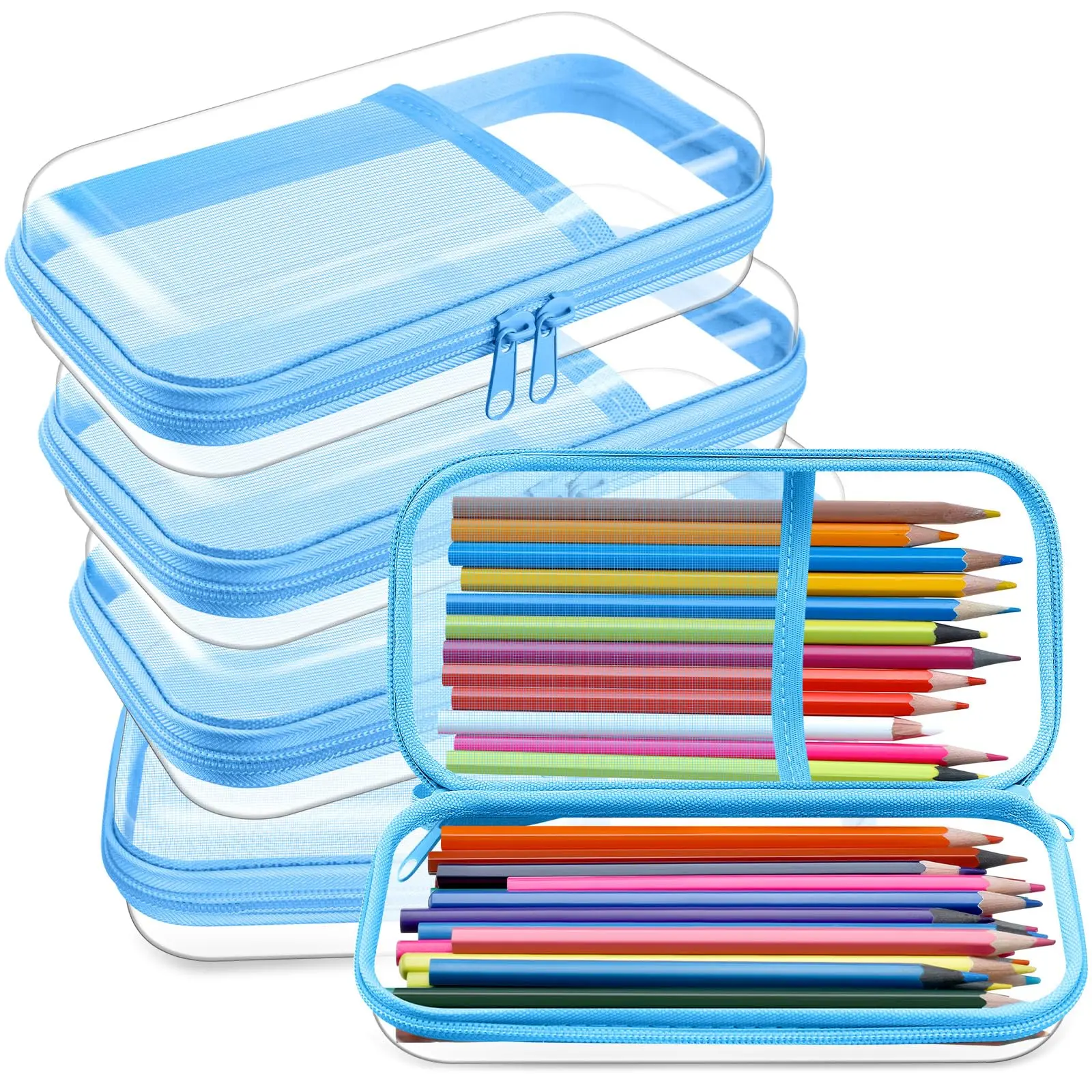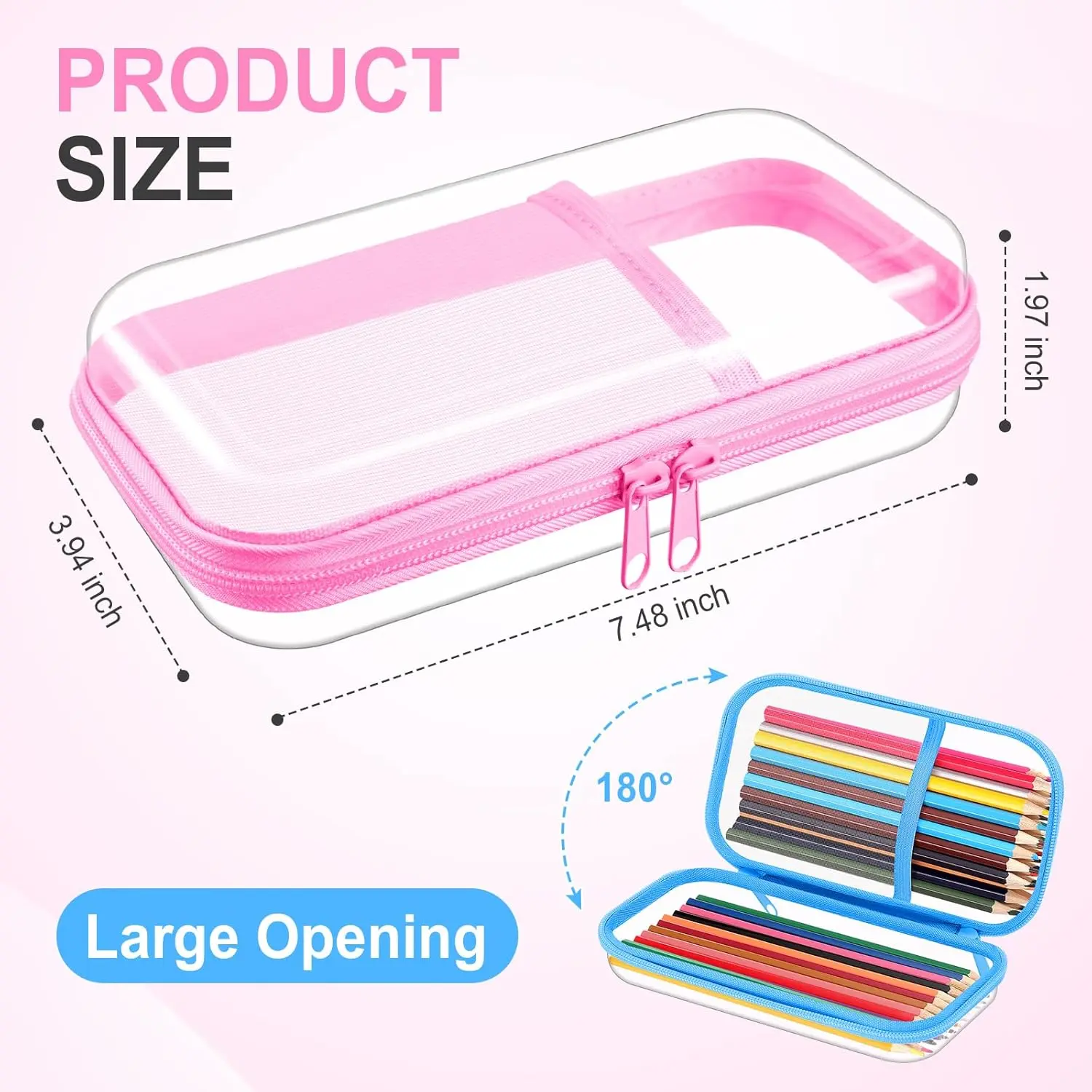 4 Pcs Clear Hard Sided Zipper Pencil Case Pouches Bulk Plastic Hard Shell Pencil Case Box Organizer with Mesh Pocket Toiletry Pouch Makeup Bag, Back to School Supplies(Macaron)