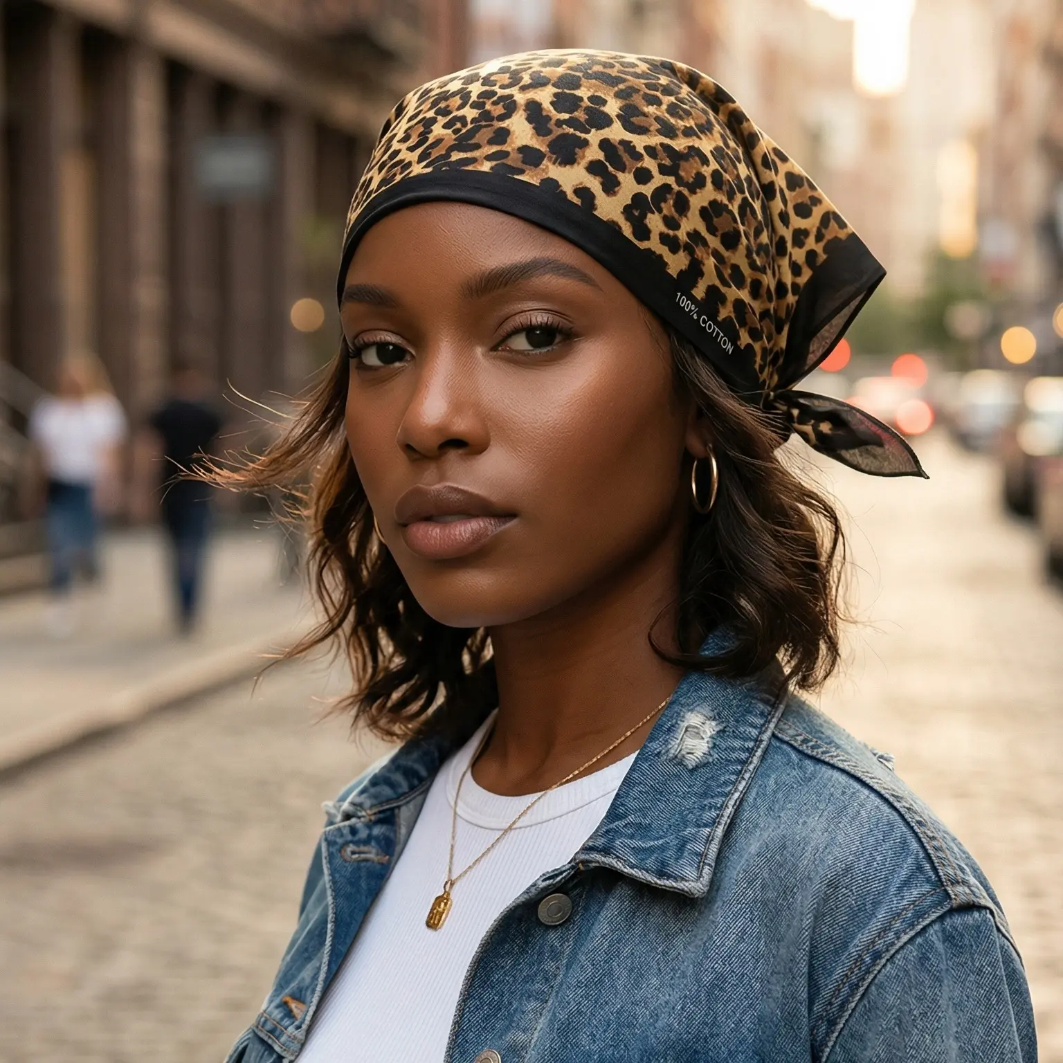 Leopard Print Cotton Bandana – Brown Animal Print Head Scarf, Neck Scarf, Unisex Fashion Accessory