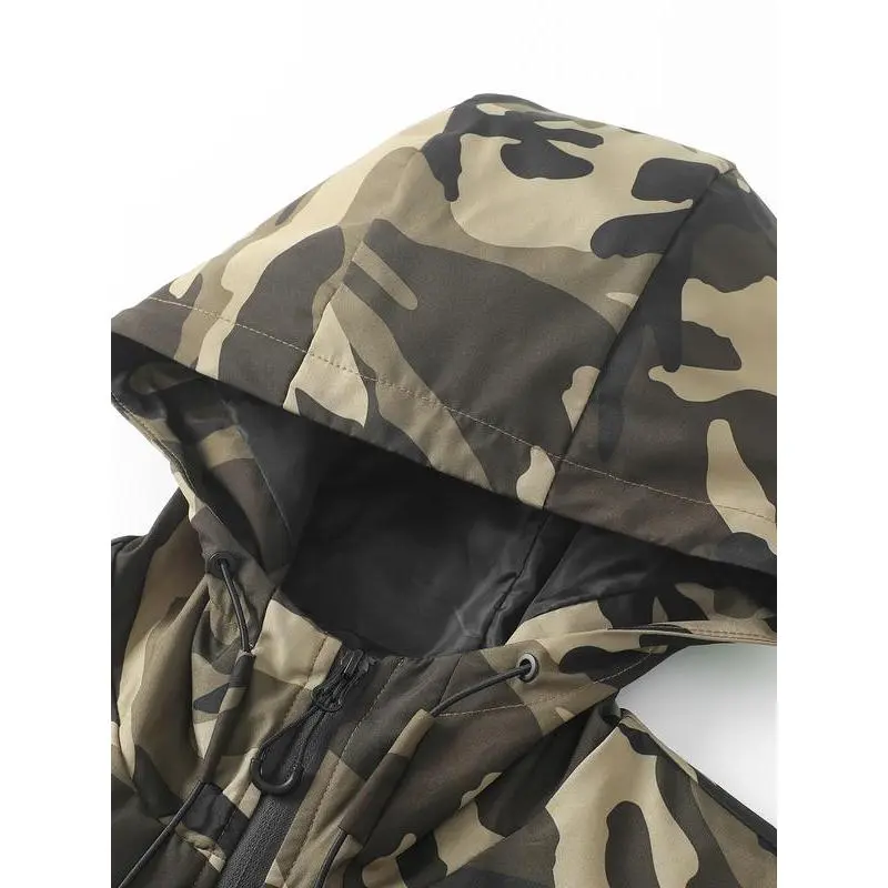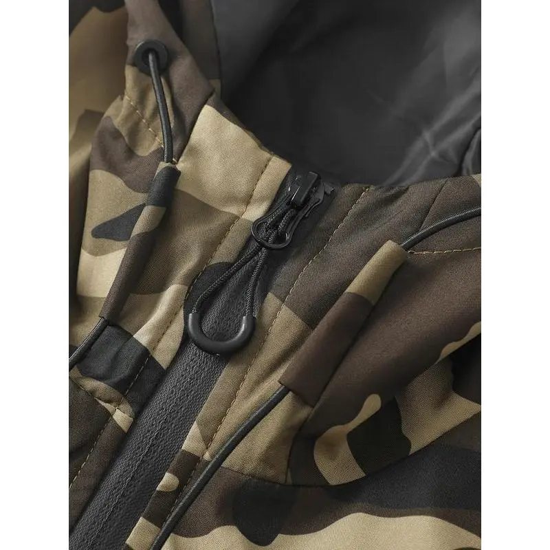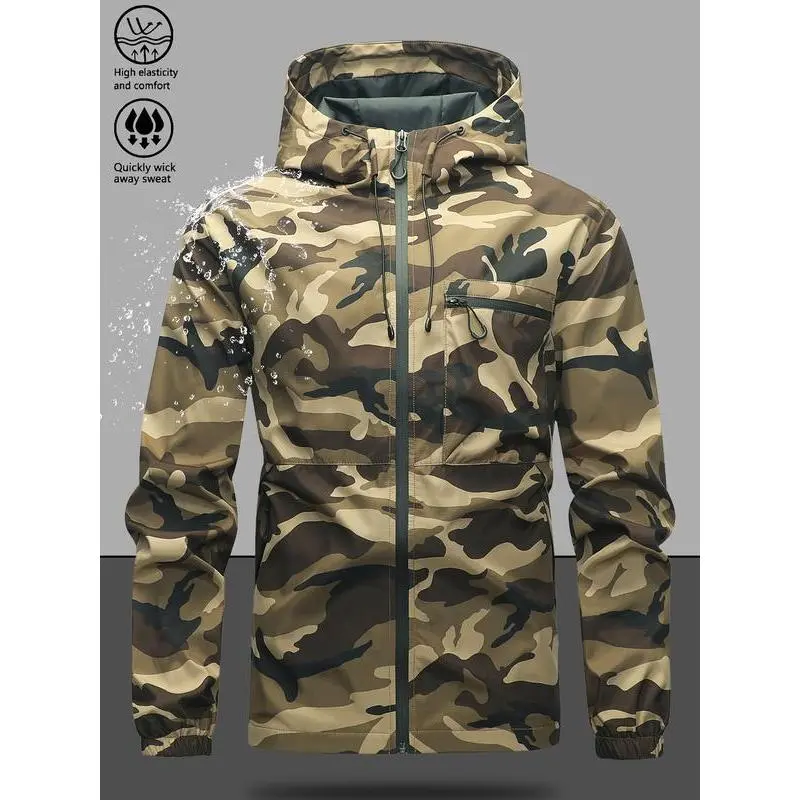 Men'sCamouflageJacket,WindproofWaterproofFabric,AdjustableHood,MultiplePockets,PerfectforOutdoorActivities,AthleticJacket