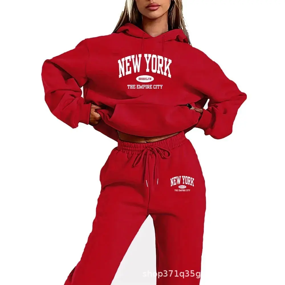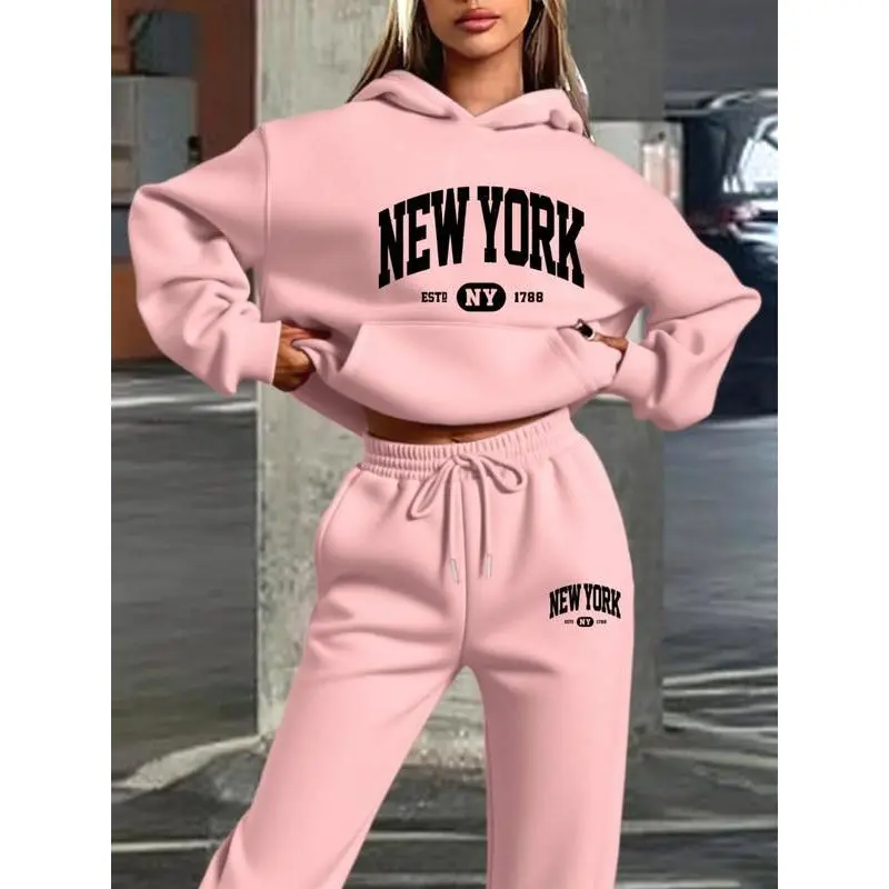 【City Elements】: Incorporating 'NEW YORK' and 'ESTD NY 1788', this set reflects urban cultural motifs, emphasizing a connection to New York. 【Creative Prints】: Showcase original text printing that enhances the casual look, standing out in everyday wardrobe selections. 【Moderate Fabric】: Utilize moderate thickness fabric for a balanced warmth in fall and winter, catering to seasonal clothing needs. 【Regular Length】: Featuring a regular length top, it offers a classic silhouette suitable for daily wear without being too long or short. 【Sweatpants Included】: Pairing with sweatpants, this set combines functionality essential for relaxed outings while maintaining a cohesive look.