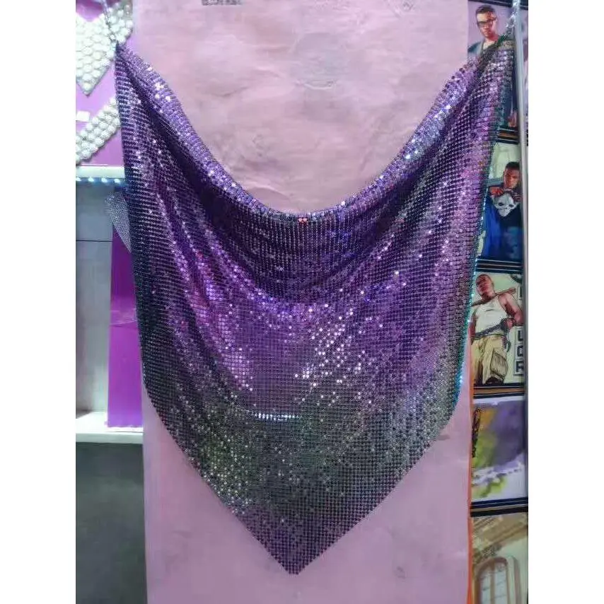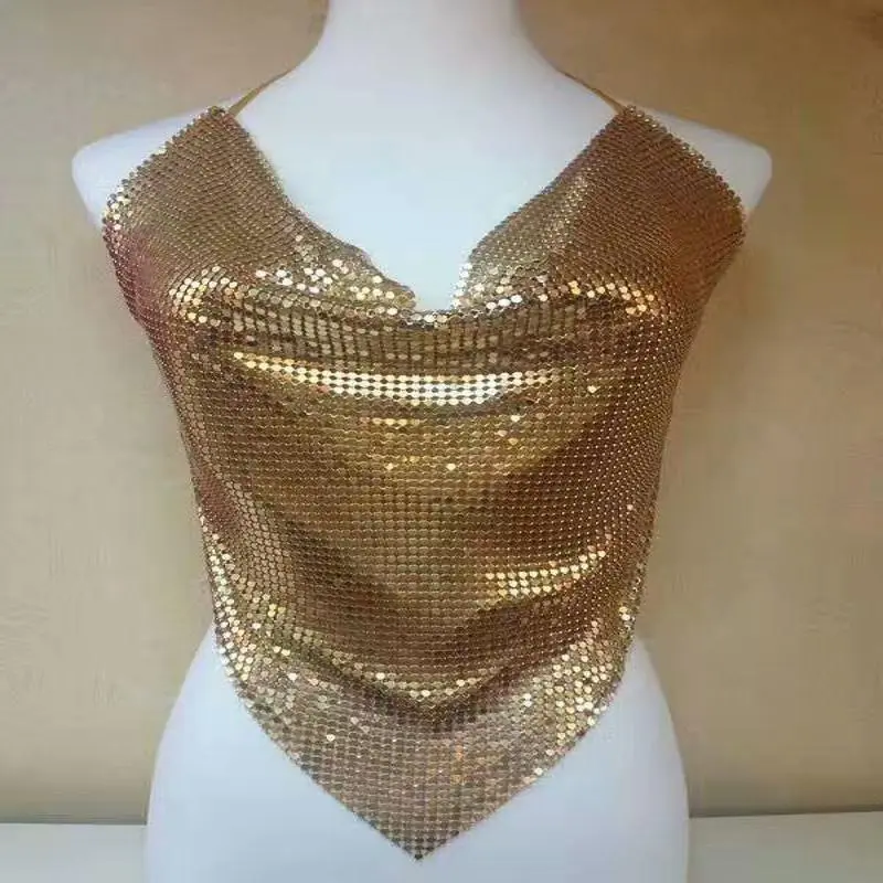 2025SexyBacklessMetalSequinHalterChainVestHD639WomenswearTops