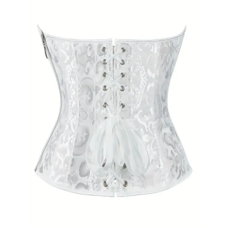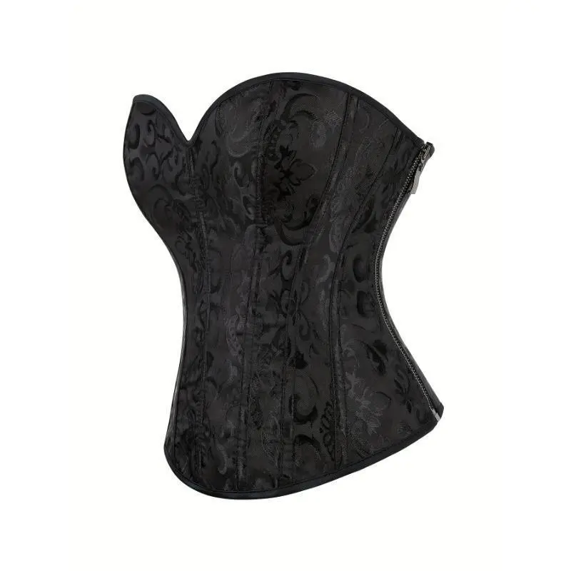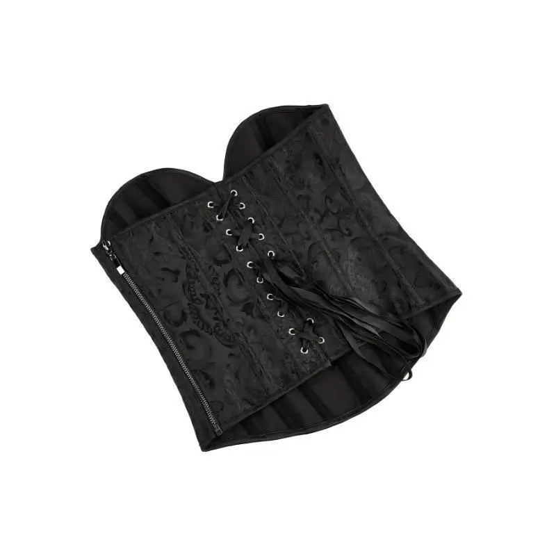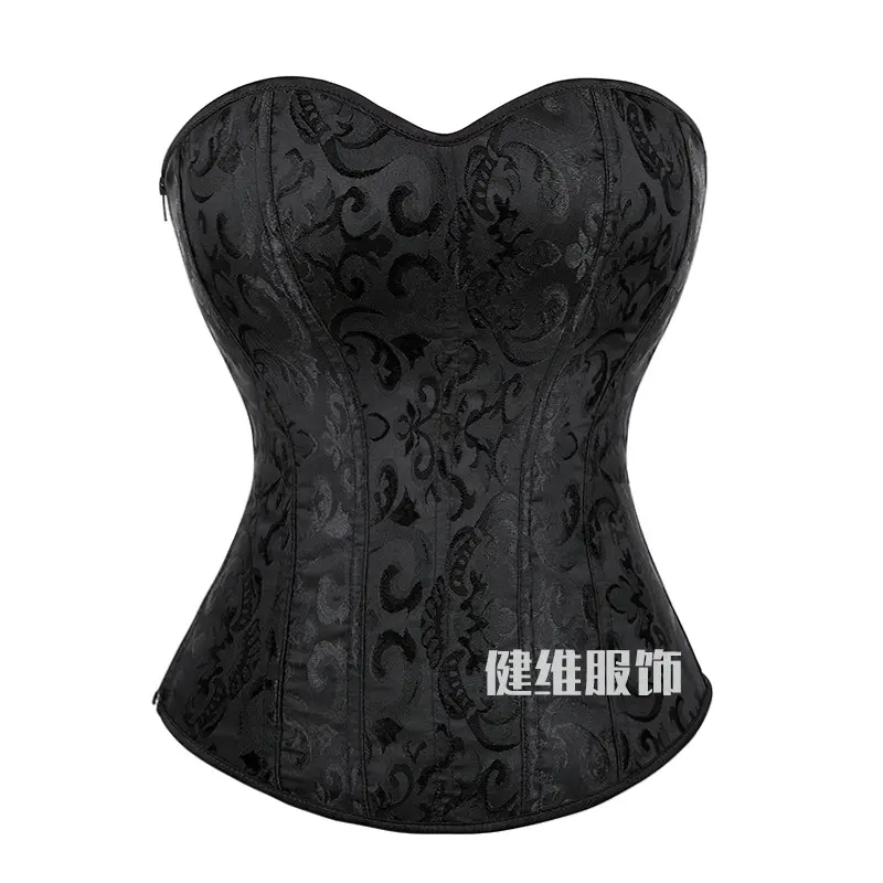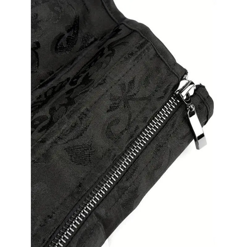 Women'S Classic Jacquard Strapless Corset with Side Zipper - Black, Lace-Up Body Shaper for Adults, Perfect for Parties and Formal Events, Formal Attire|Elegant Strapless Corset|Zippered Corset