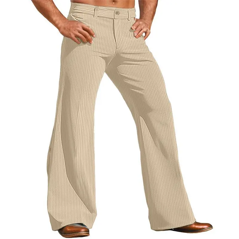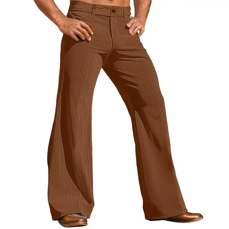 Men's retro solid color corduroy slim fit micro flared suit pants
