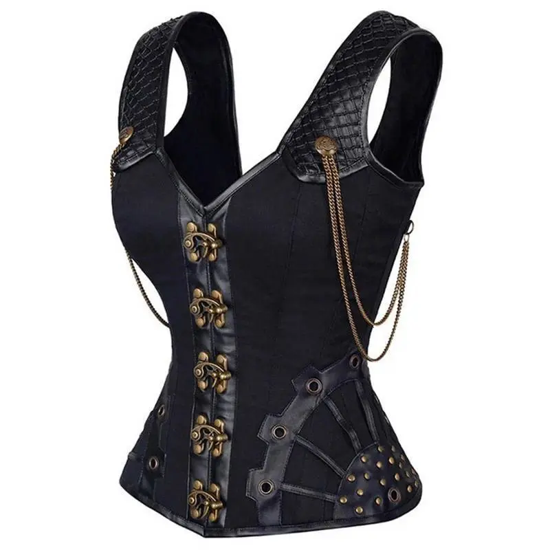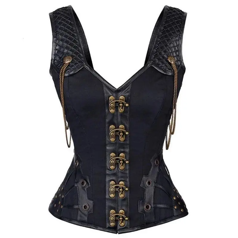SteampunkCorsetwithStrapsWomenGothicVintageLeatherOverbustBustierTopLace-upSteelBonedCorseletVest