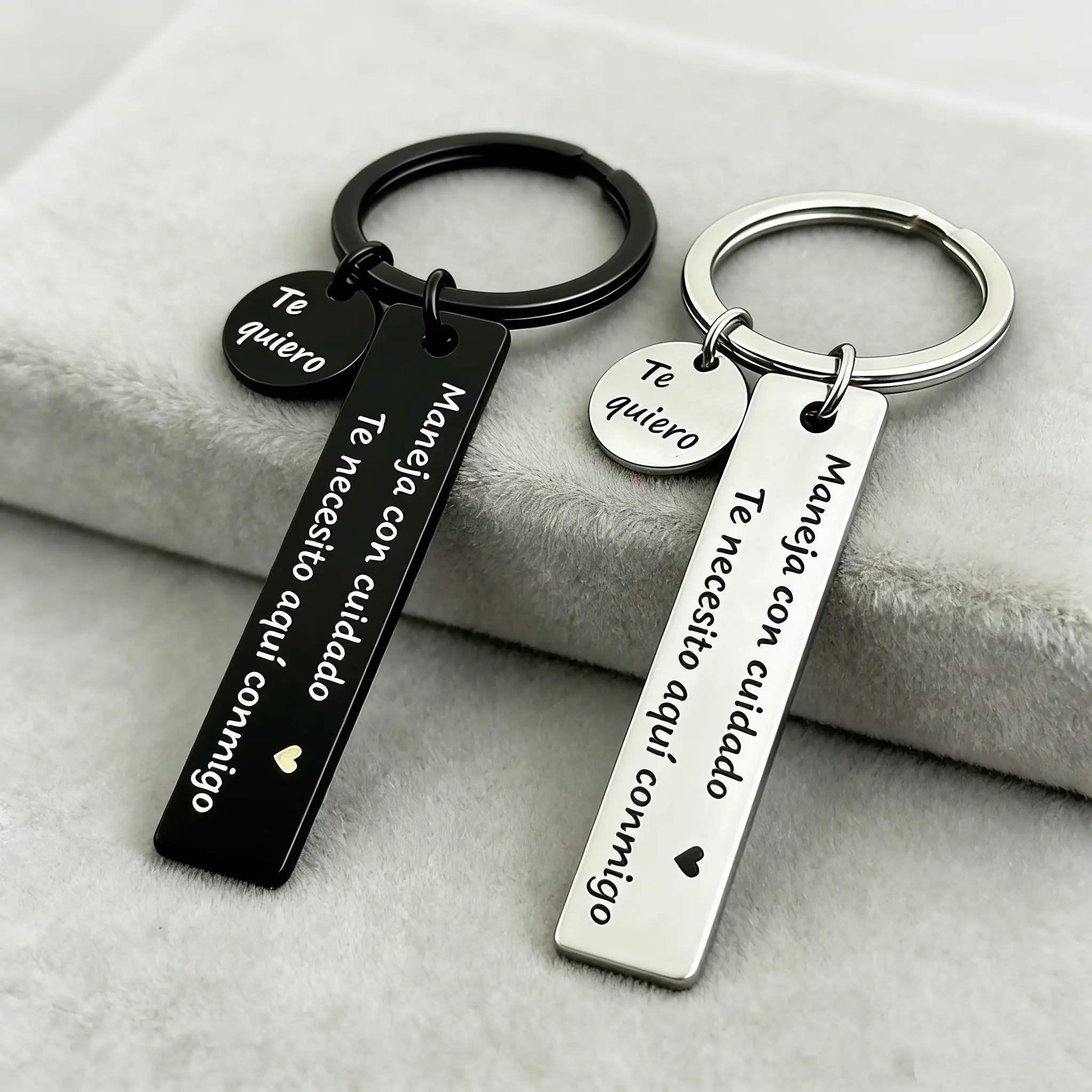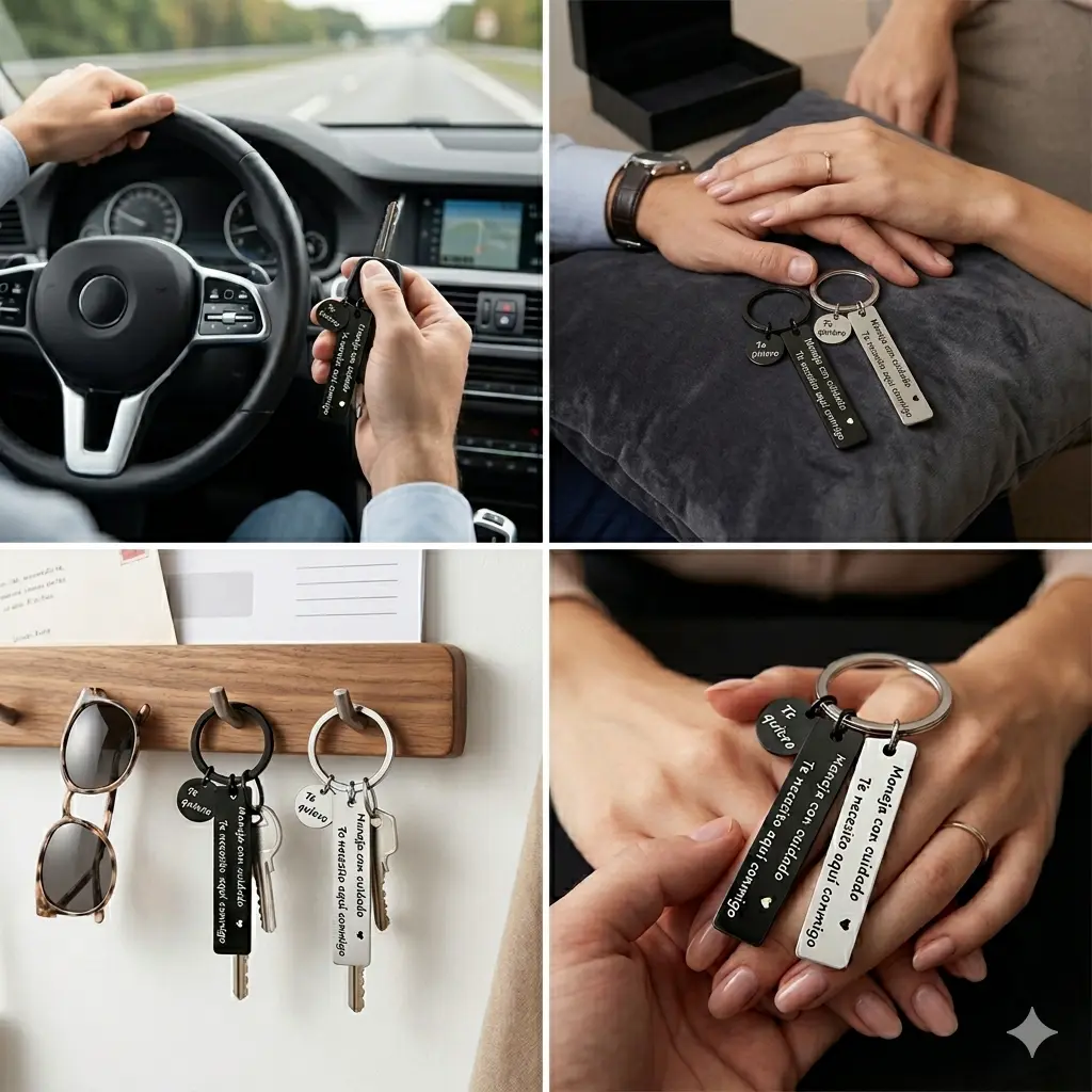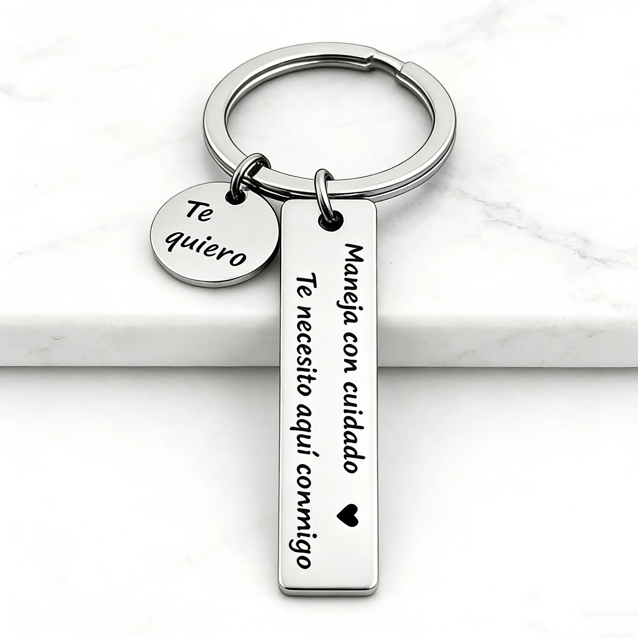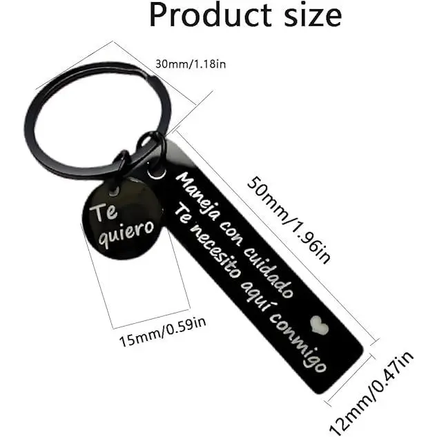 ✨Drive safe with this "Maneja Con Cuidado" keychain.It's a loving gift for your boyfriend or husband, reminding them to drive safely.The unique letter design features an exclusive surname for each letter.It's a perfect gift for any occasion, making them feel special.Show your love with this personalized keychain.