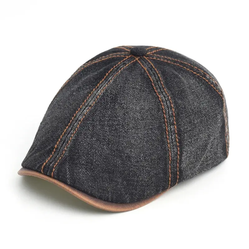 Denim Beret Hat Washed Vintage Peaked Cap Adjustable Cotton Newsboy Cap Casual Hats Flat Cap