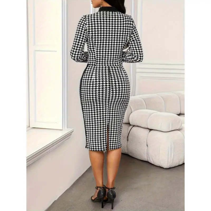 Beautiful women's clothing Fashionable and Elegant Houndstooth Women's Dress Set Womenswear Suits