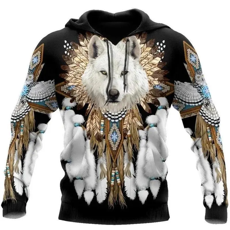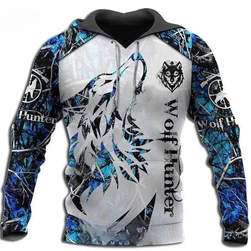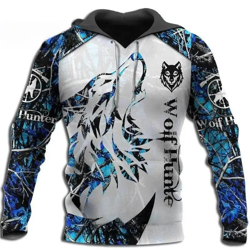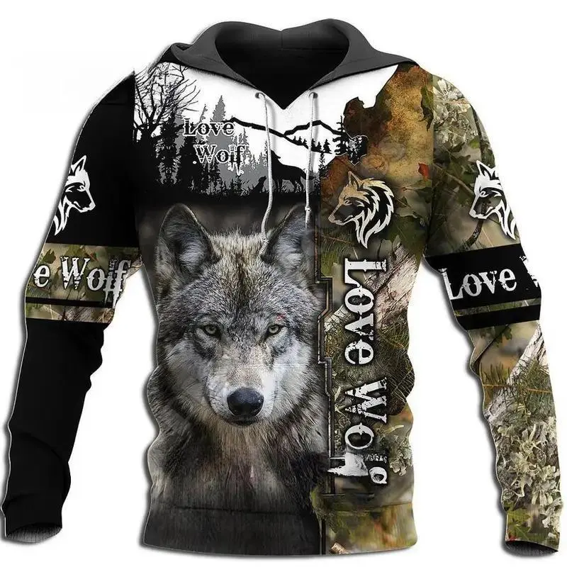 New Wolf Hooded Sweatshirts Men's Clothing Casual With 3D Printed Long Sleeve Pullover Fashion Fleece Jackets Streetwear