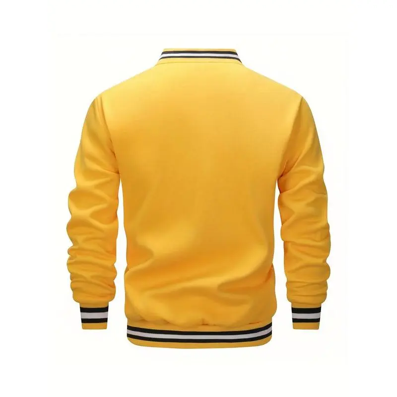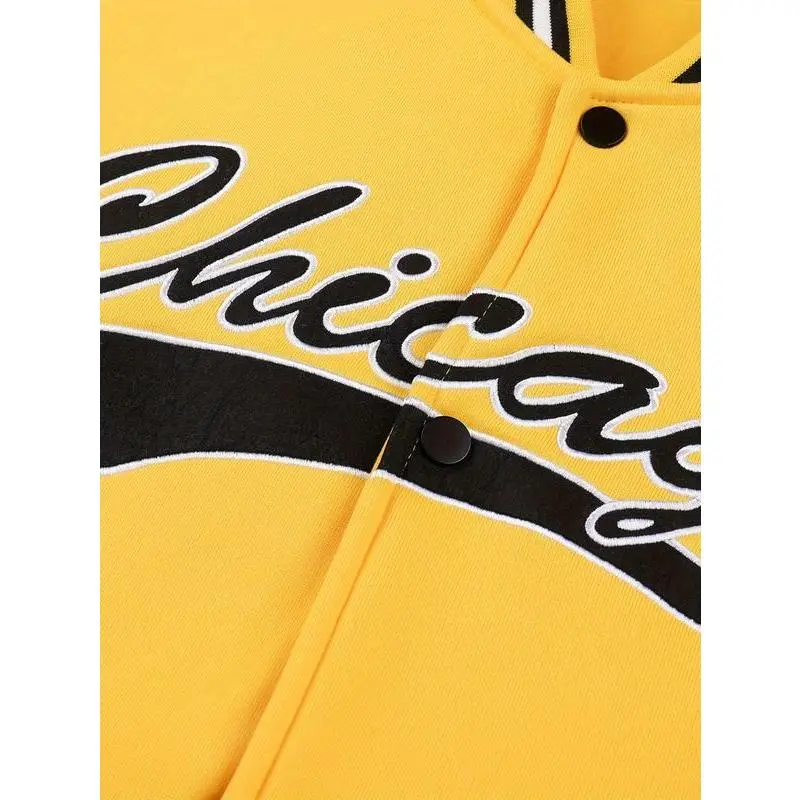 Chicago Men's Casual Yellow Baseball Jacket ✨ Transform your casual style with this Chicago Men's Casual Yellow Baseball Jacket. It boasts a varsity design and button front, ideal for daily wear. The jacket features an embroidered logo, enhancing your team spirit. Perfect for those who value both style and comfort. Versatility and Comfort: This jacket is suitable for various occasions. Pair it with jeans or shorts for a relaxed look. The yellow color stands out, making it great for casual outings. Stay stylish while showing your team support. Fabric: 100% polyester fiber.