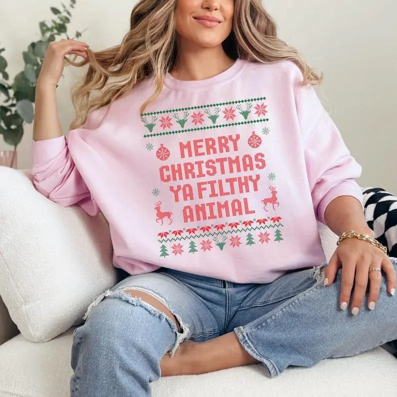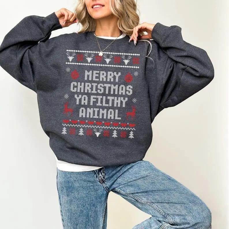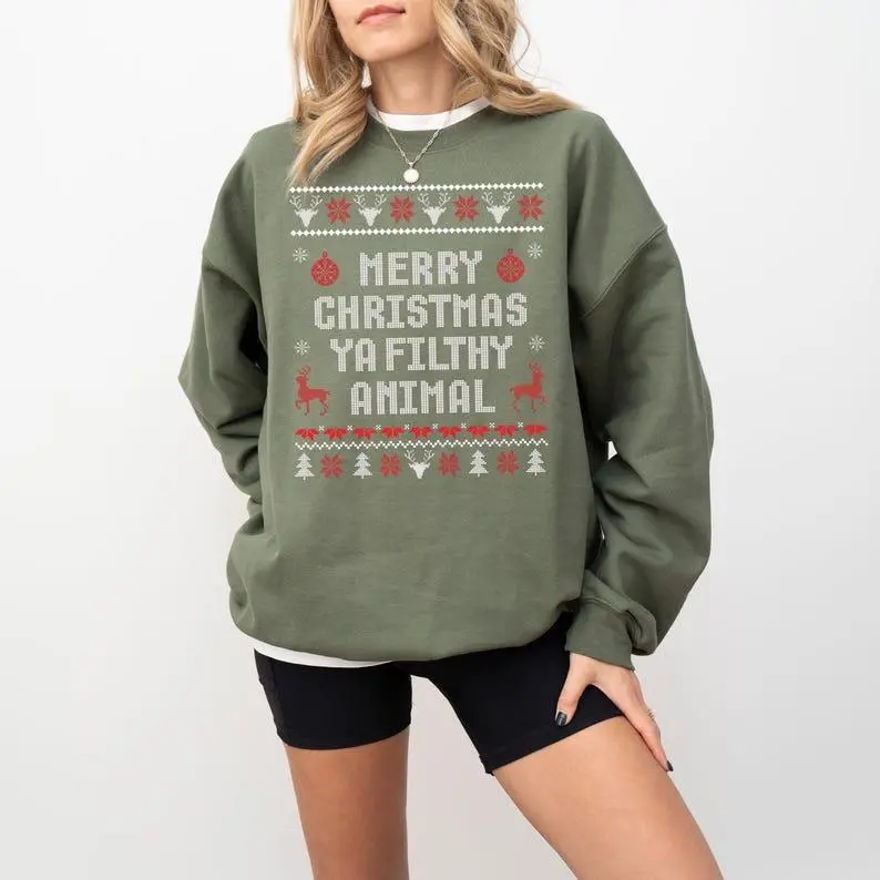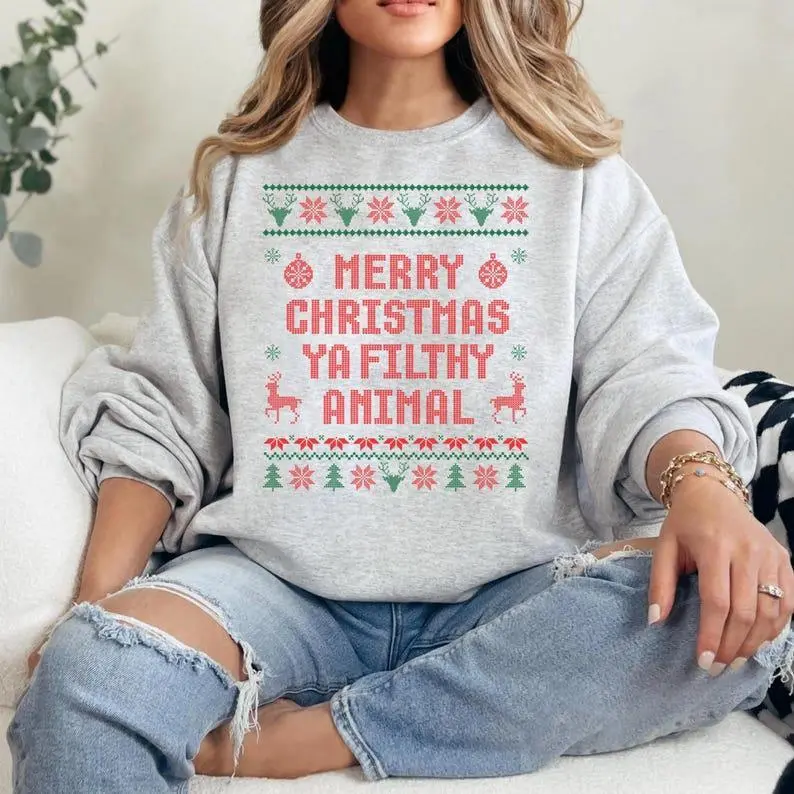 (Sale Off Up To 50%) Merry Christmas Ya Filthy Animal Sweatshirt, Ugly Christmas Sweater, Funny Christmas Shirt,Christmas Gifts,Christmas Crewneck,Winter Hoodie, Full Color, For Men, For Women, Casual, Classic Fashion, Tee Print