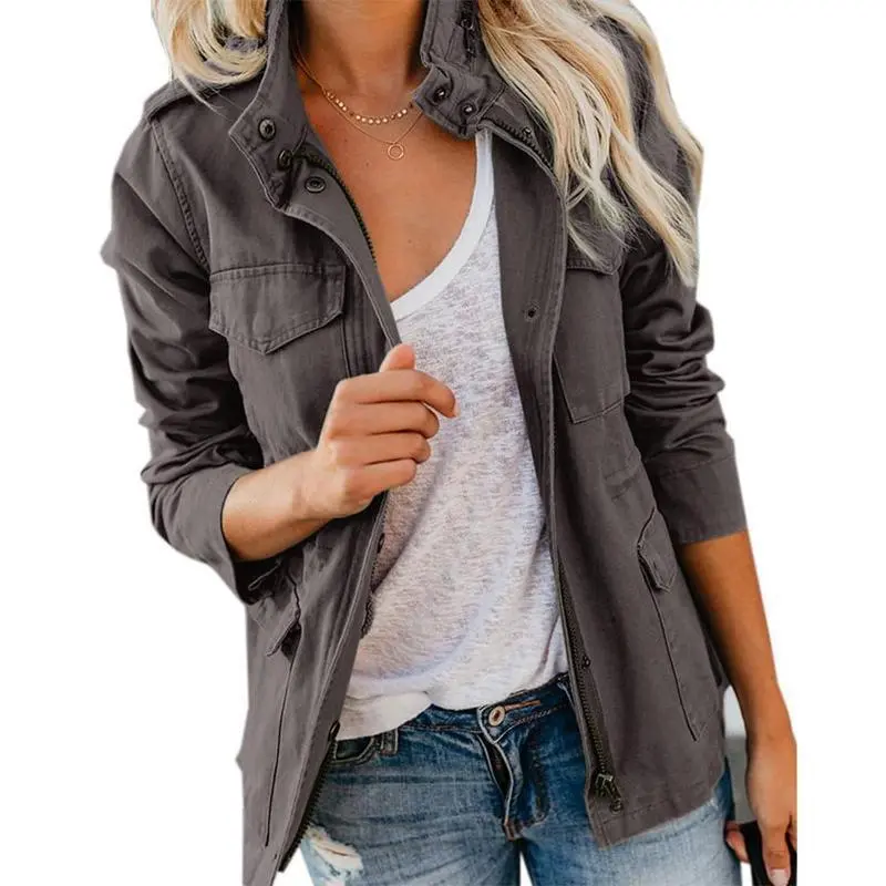 Yousify Womens Military Jacket Zip Up Snap Buttons Lightweight Utility Anorak Field Safari Coat Outwear with Pocket Cotton Fabric