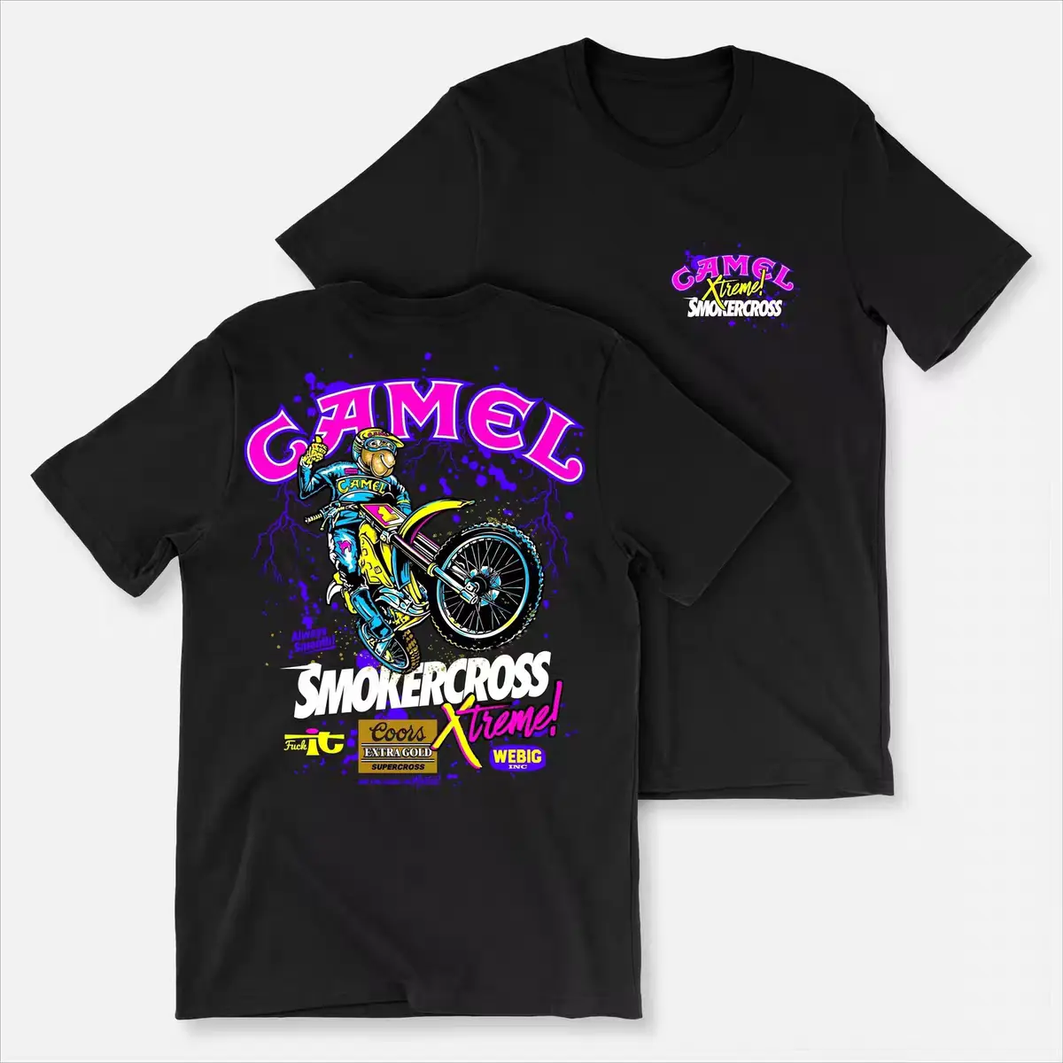 SmokerCross Xtreme T-Shirt Neon Motocross Graphic Tee for Dirt Bike Fans Retro 90s Motorcycle Racing Cotton Shirt for Men Gifts Streetwear