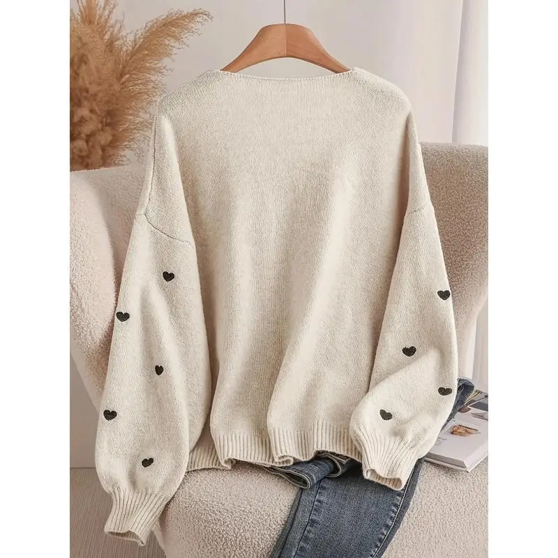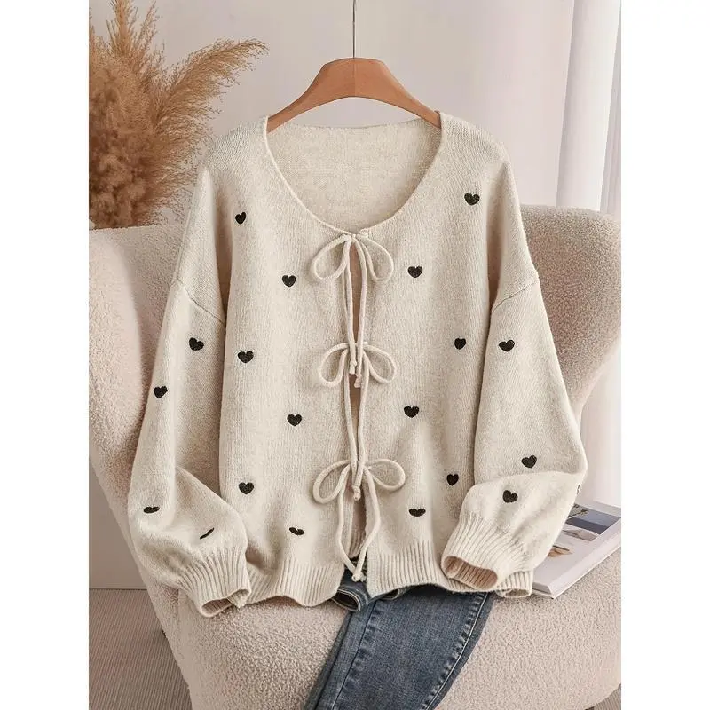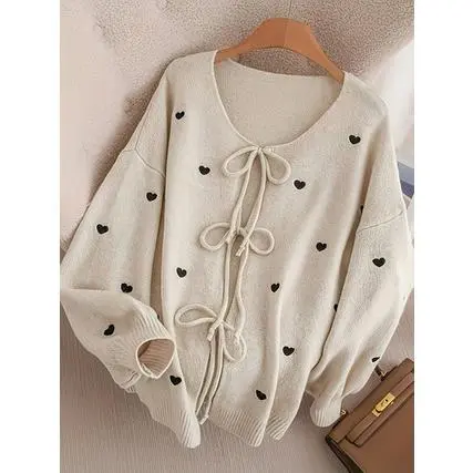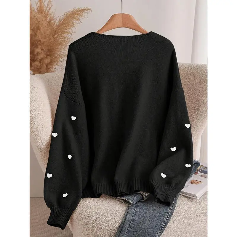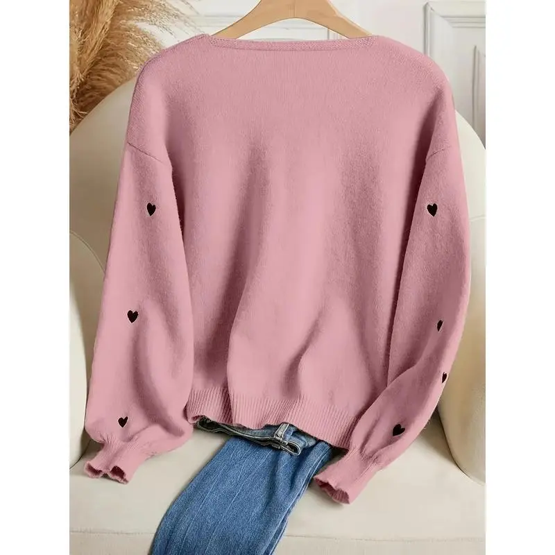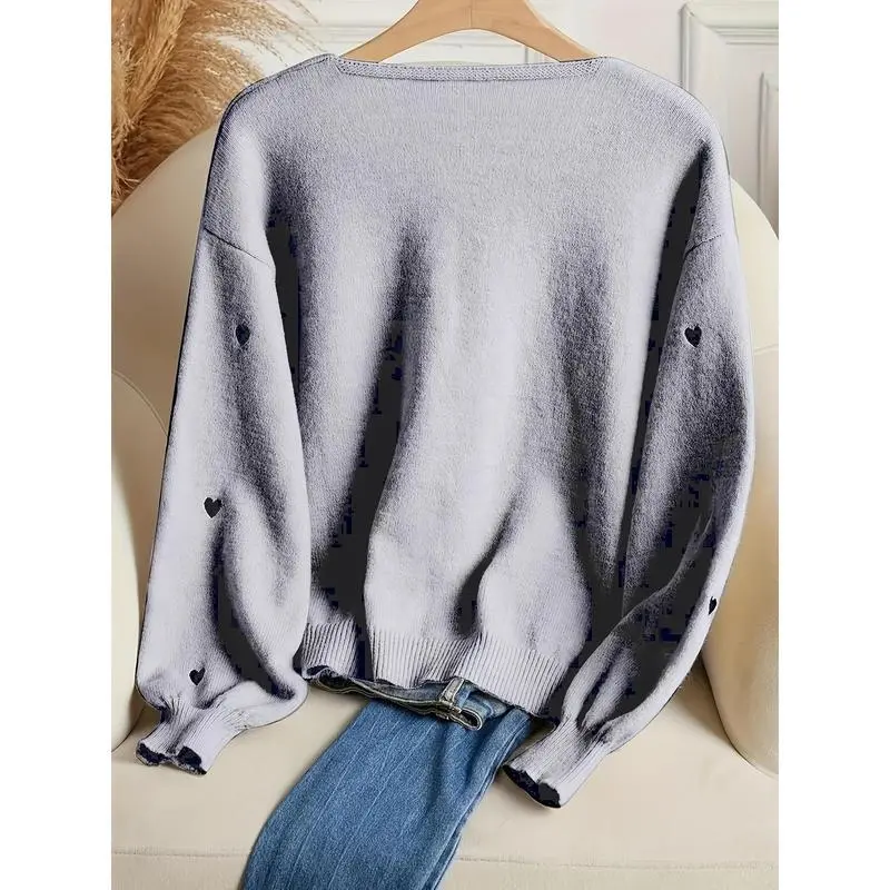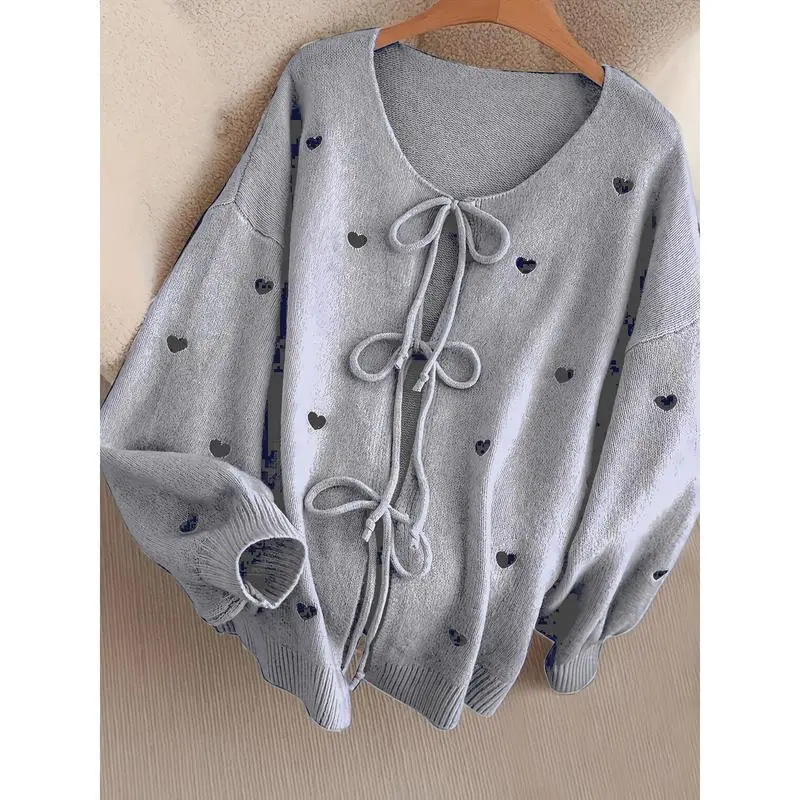 Women's Long Sleeve Open Front Color Block Heart Pattern Knitted Cardigan
