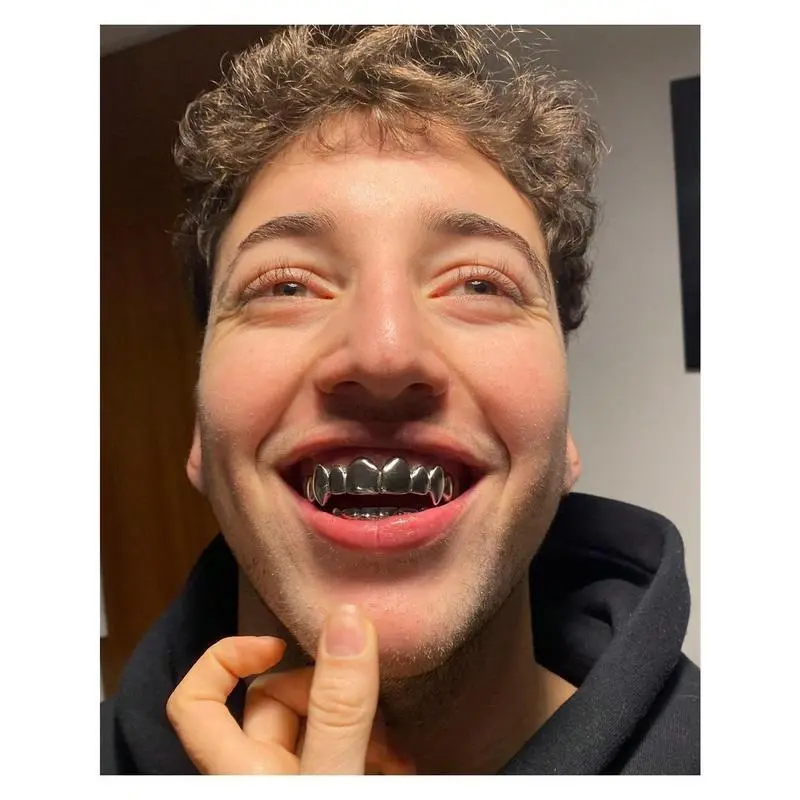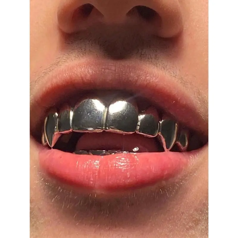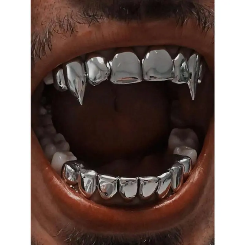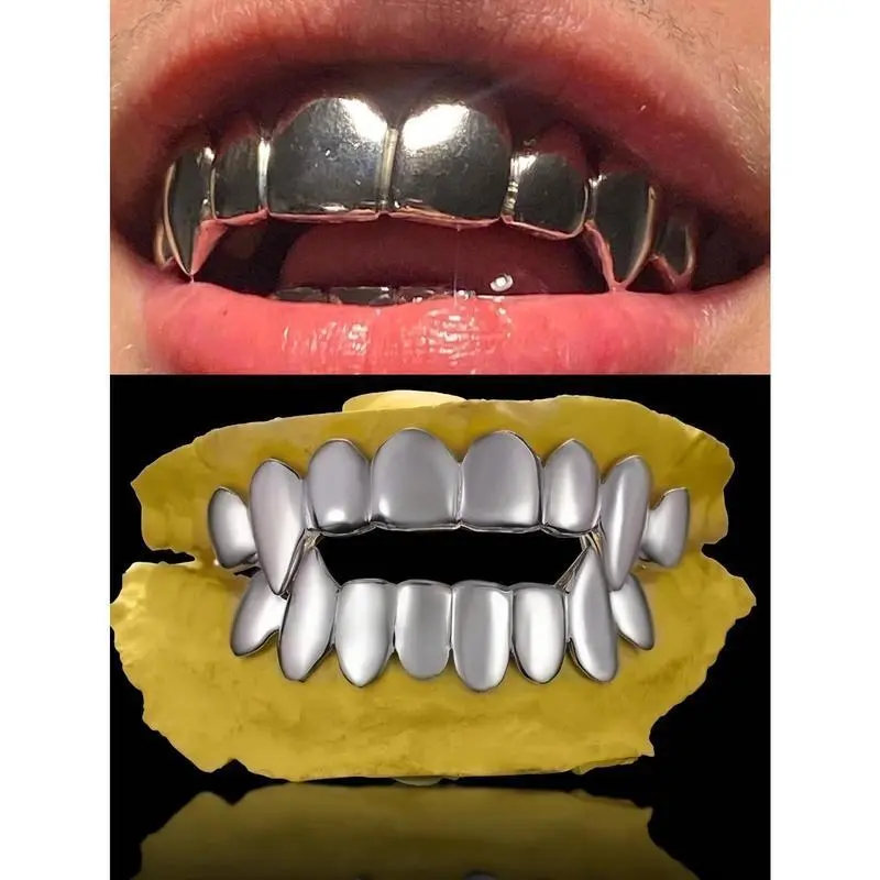 THATBOY2pcs/SetHipHopFashionJewelryForVampireGrillz18KGoldenSilveryColorPlatedBracesVampireWolfTeethGrillsOralCosmeticOrthodonticAccessories