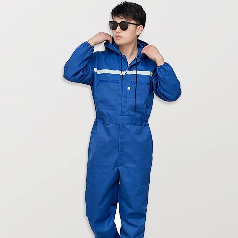 Hooded navy blue polyester cotton