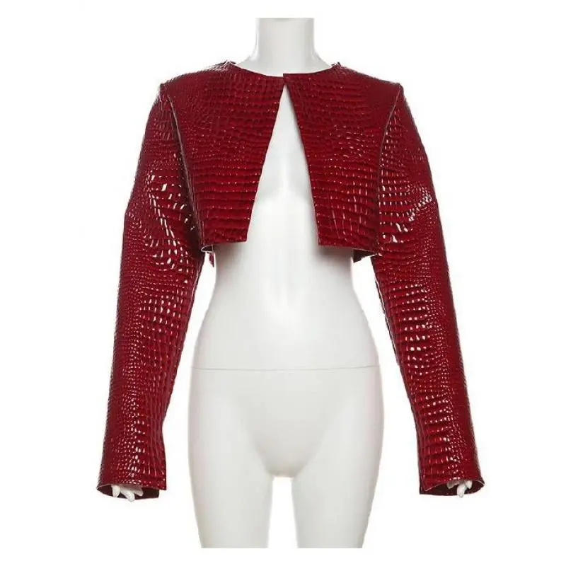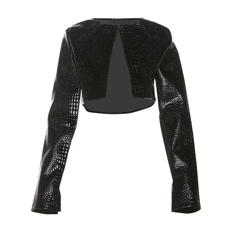 Faux Leather Snake Skin Design Cropped Long Sleeve Structured Jacket Top