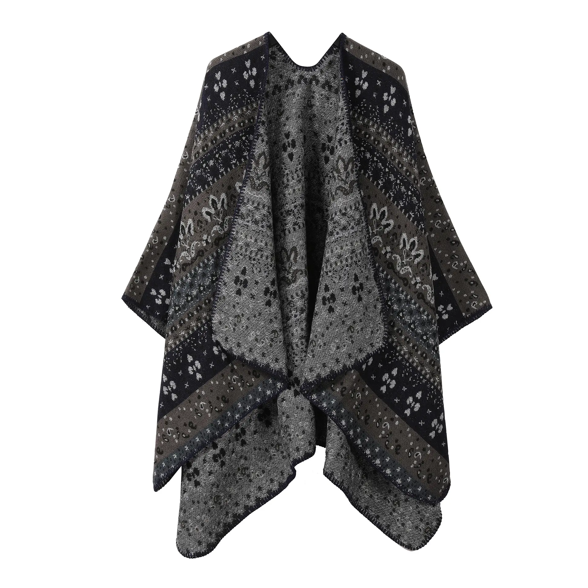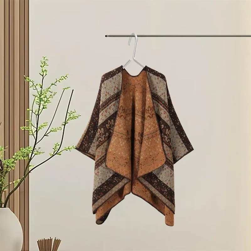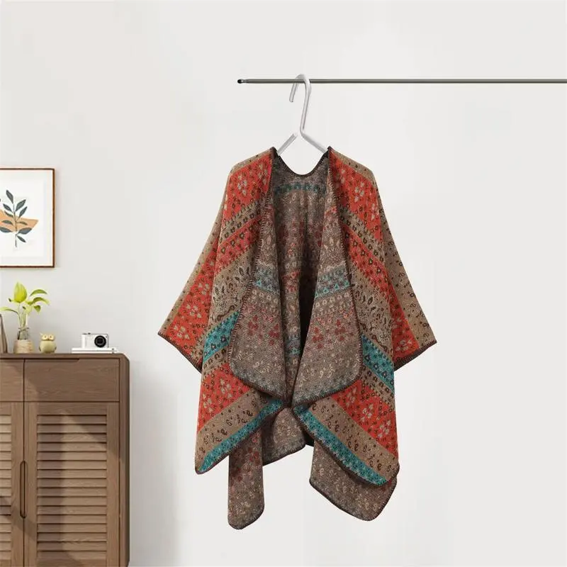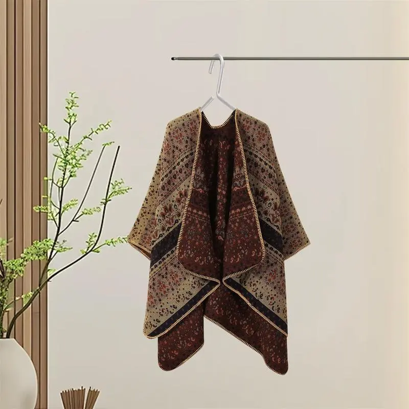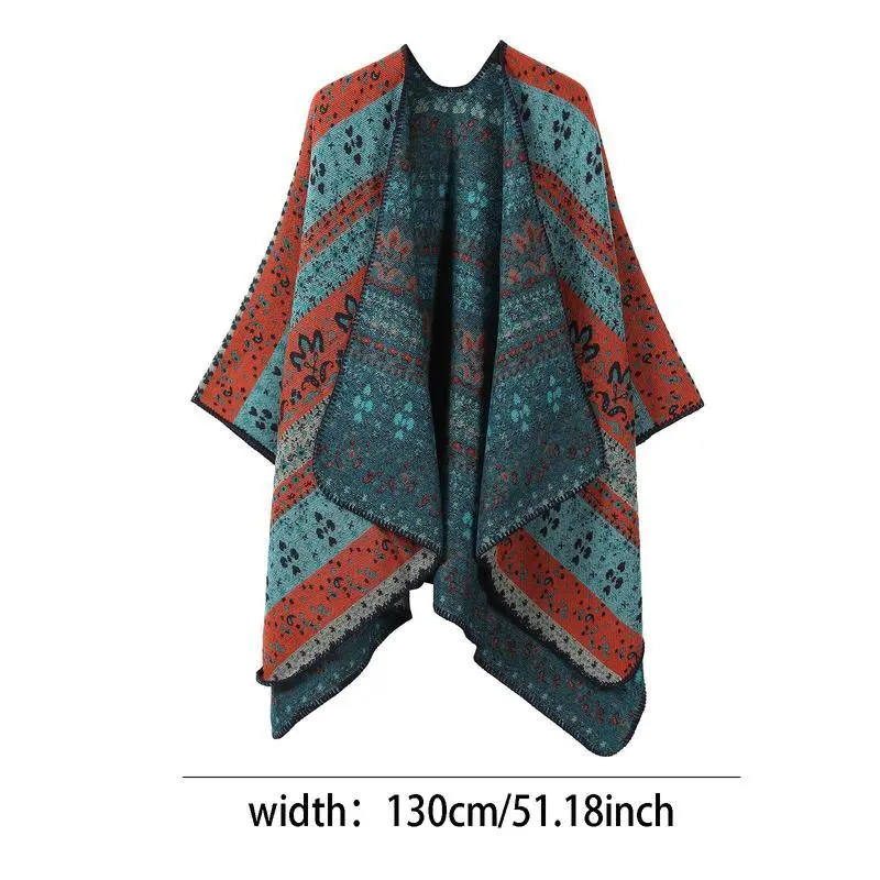 Women Boho Chic Cashmere Shawl Wrap Vintage Side Split Elegant Poncho Cape Open Front Cardigan Shawl For Winter Fall