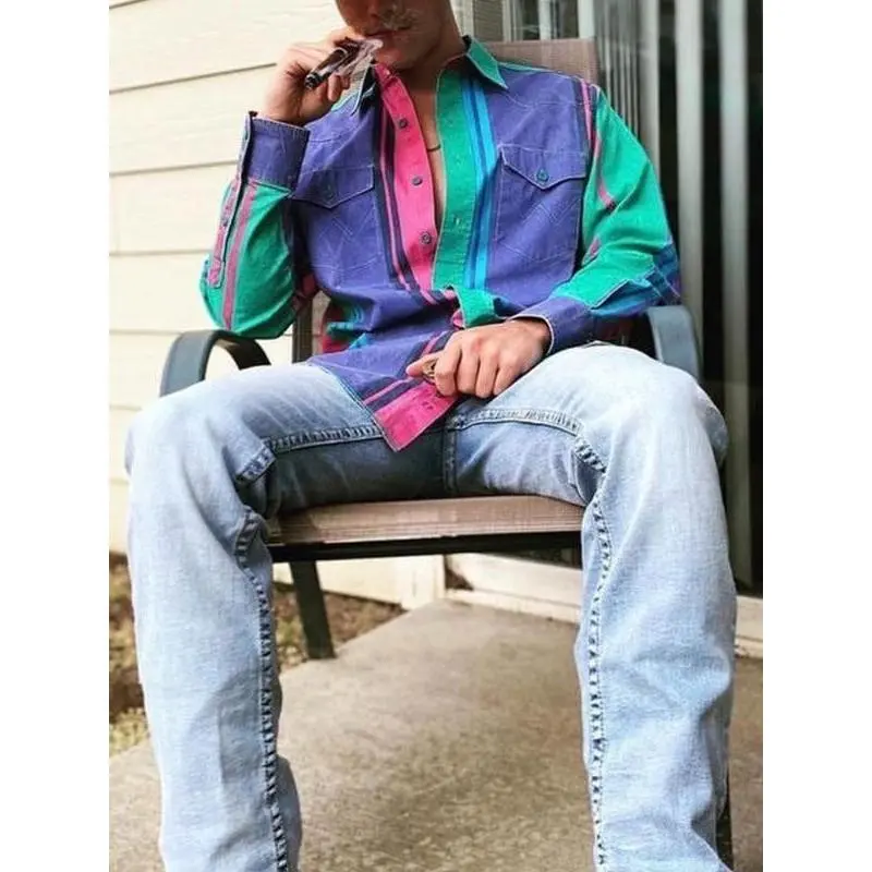CasualAztecPrintWesternMen'sLongSleeveShirtVintageMen'sCasualMexicanCowboyPoloShirtMensTopsBlouses & Shirts