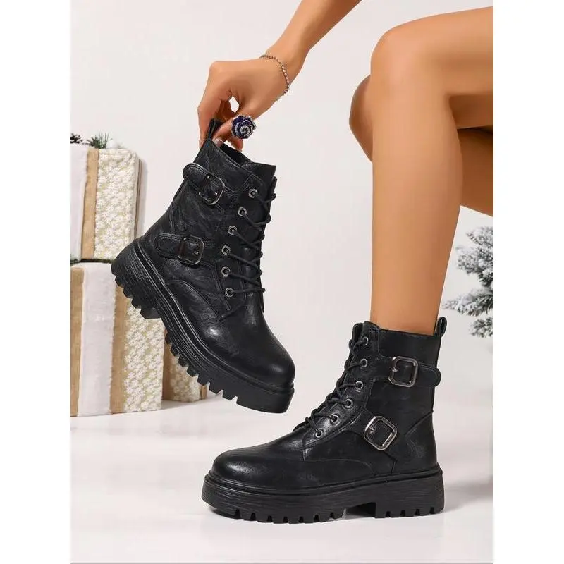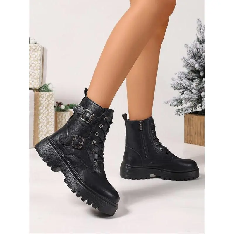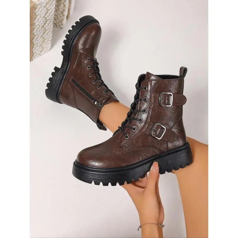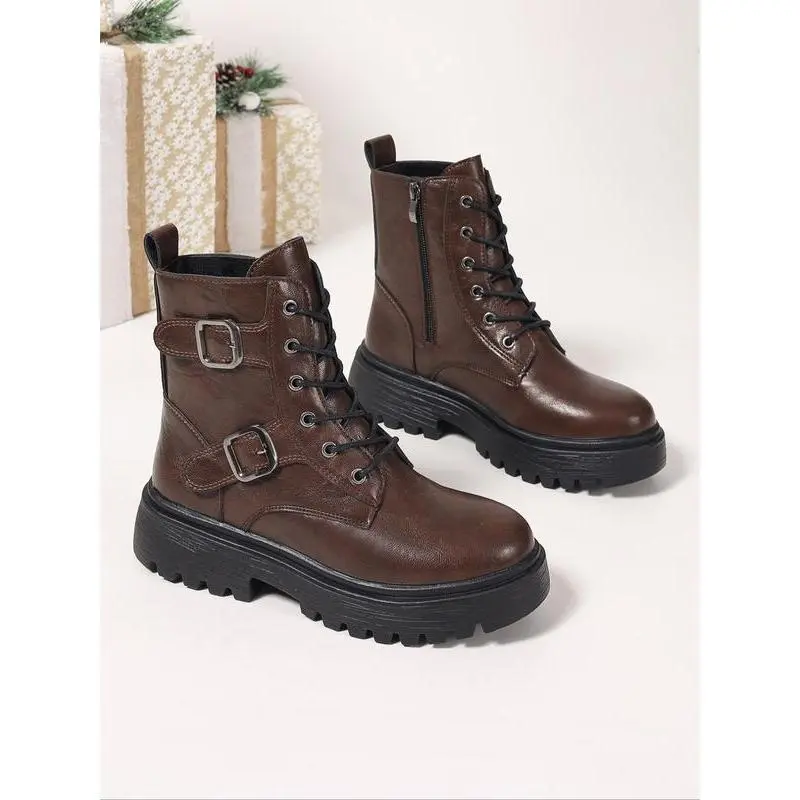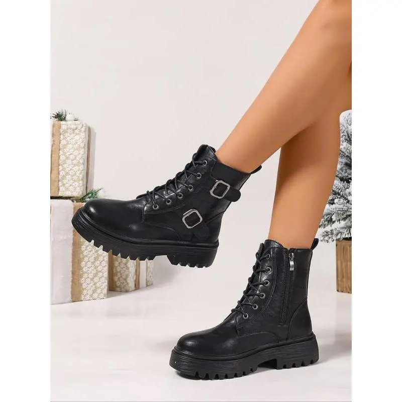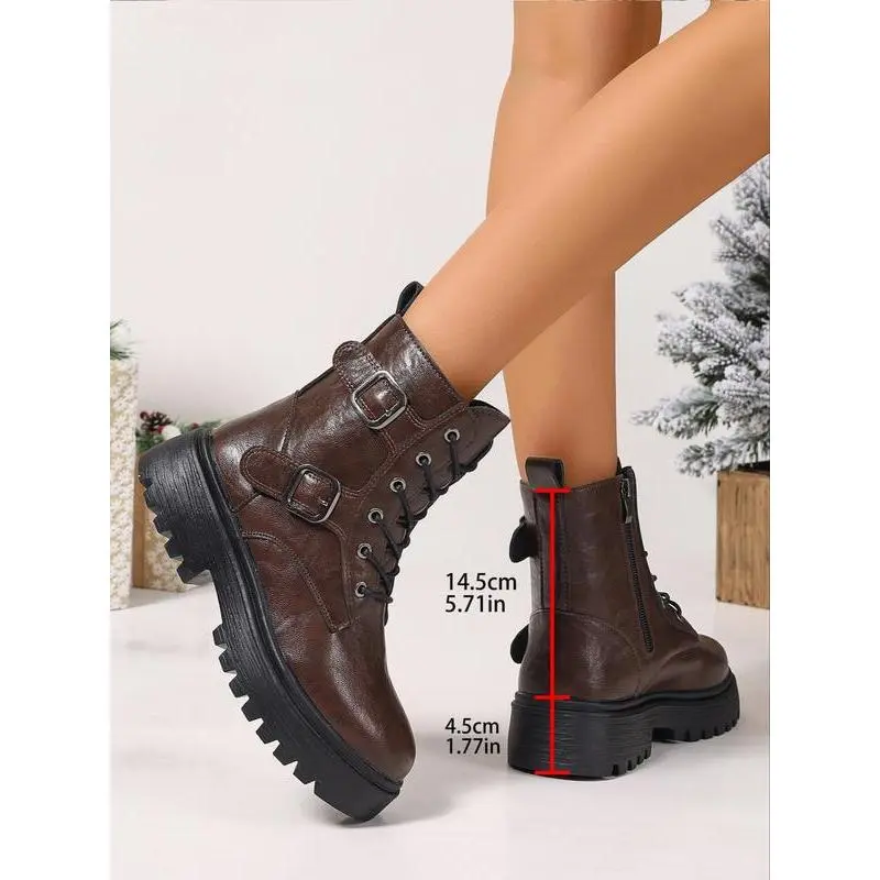 ��Unique Fastening��: Featuring dual buckle and side zipper closure, ensuring a snug fit while adding to the aesthetic of the boots. ��Sturdy Construction��: Crafted from durable PU leather and rubber sole, providing reliable support and longevity in everyday wear. ��Heightened Security��: Designed to sit above the ankle and below the knee, offering enhanced protection and coverage for the foot. ��Seasonal Adaptability��: Constructed for fall and winter use, these boots provide the necessary warmth and functionality in cooler weather. ��Plain Yet Effective��: The simple plain pattern allows for easy matching with various outfits, making it practical for daily wear.