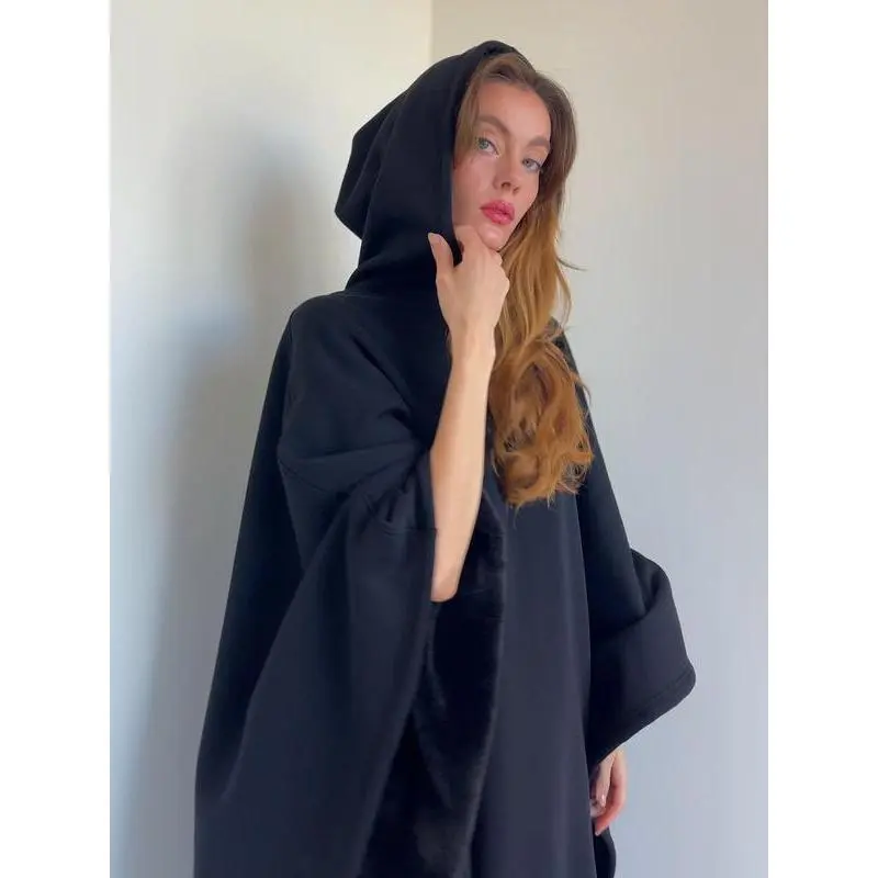 Mao Mao Gothic Style Hooded Cardigan Women's Thickened Winter Coat Fur Collar Design Zipper Jacket Y2K Fashion