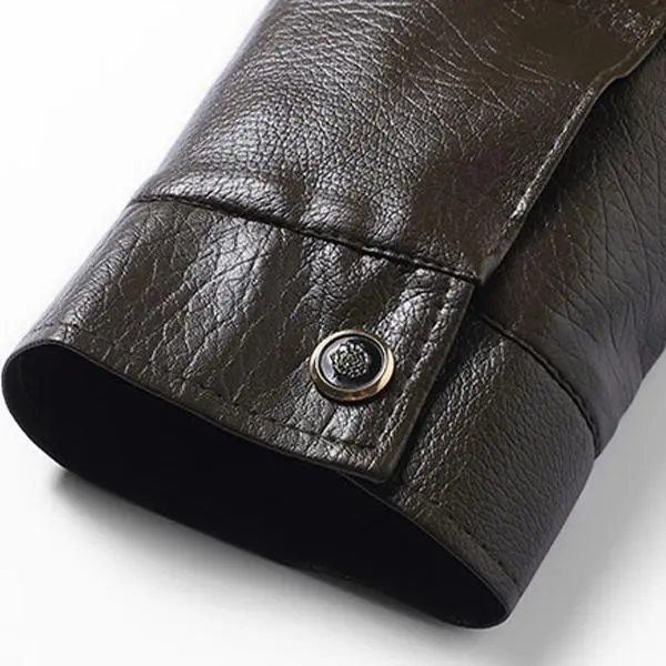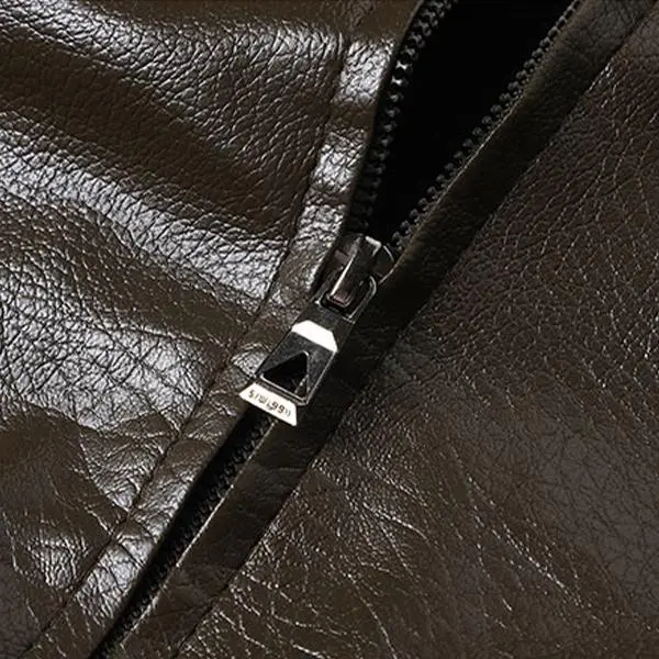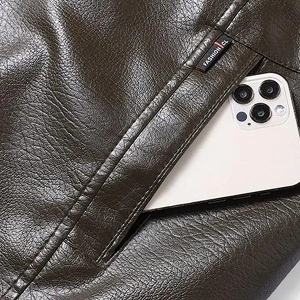 Men's Brown Faux Leather Jacket ✨ Elevate your style with this vintage biker jacket! Crafted from brown faux leather, it features a shearling lining for warmth. The sherpa collar adds extra comfort. This full-zip jacket is perfect for chilly days. Its design combines functionality with fashion. Ideal for those who appreciate a classic look. Perfect for Everyday Wear This jacket is versatile and suitable for various occasions. Pair it with jeans or chinos for a chic, casual look. Stay stylish while staying warm. It’s a must-have for anyone looking to add a touch of vintage flair to their collection.