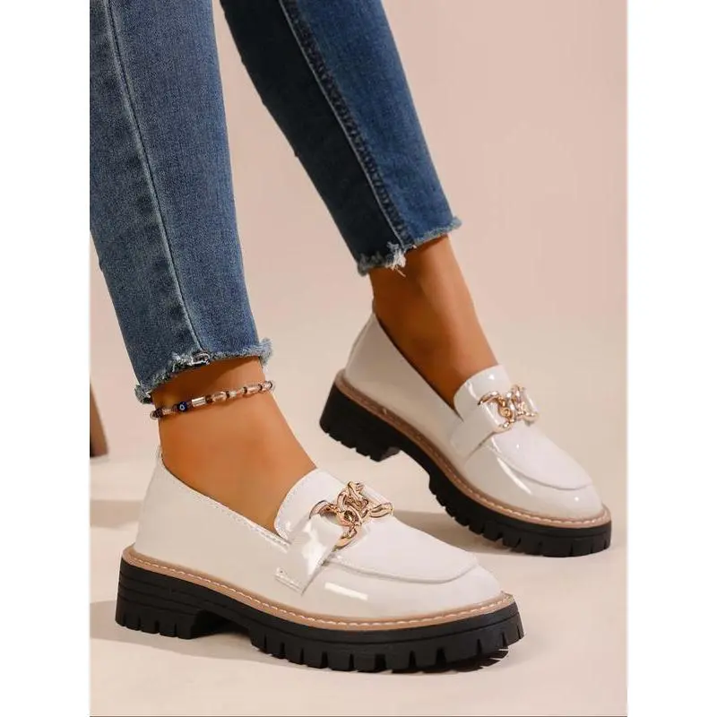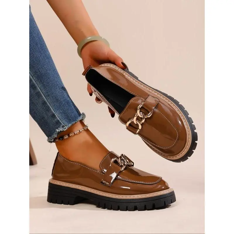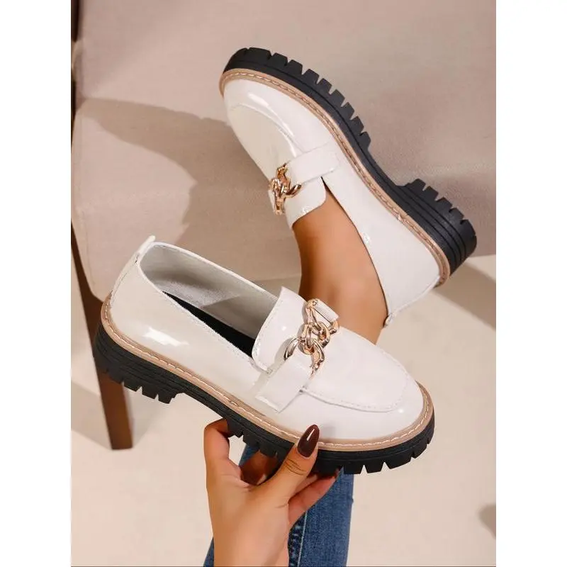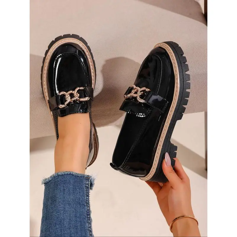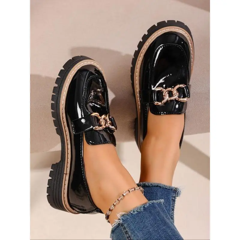 【Metallic Accent】: Features a striking metallic buckle that enhances the overall appearance, distinguishing them from standard loafers. 【Premium Material】: Crafted from high-quality PU leather, ensuring durability while providing a refined finish for everyday wear. 【Unique Shape】: Designed with a low ankle height that offers a contemporary silhouette, suitable for a range of outfits. 【Robust Sole】: Equipped with a sturdy PVC sole, these loafers ensure reliable traction and stability on different surfaces. 【Plain Pattern】: Maintains a plain pattern that effortlessly complements various ensembles without overwhelming details.