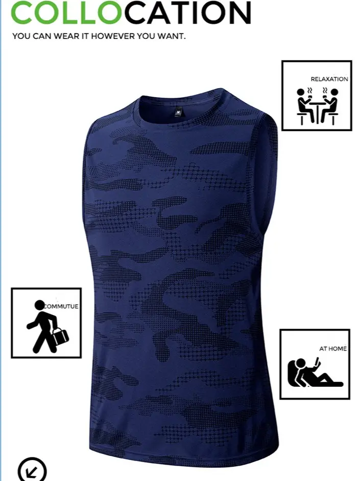 Viral TikTok Cool-Touch Camouflage Tank Top — Men’s Icy, Breathable Sleeveless Gym Workout Tank. This sleeveless version is everyone's obsession. It feels cool to the touch, like built-in air conditioning for your arms. Perfect for arm days and intense gym sessions.