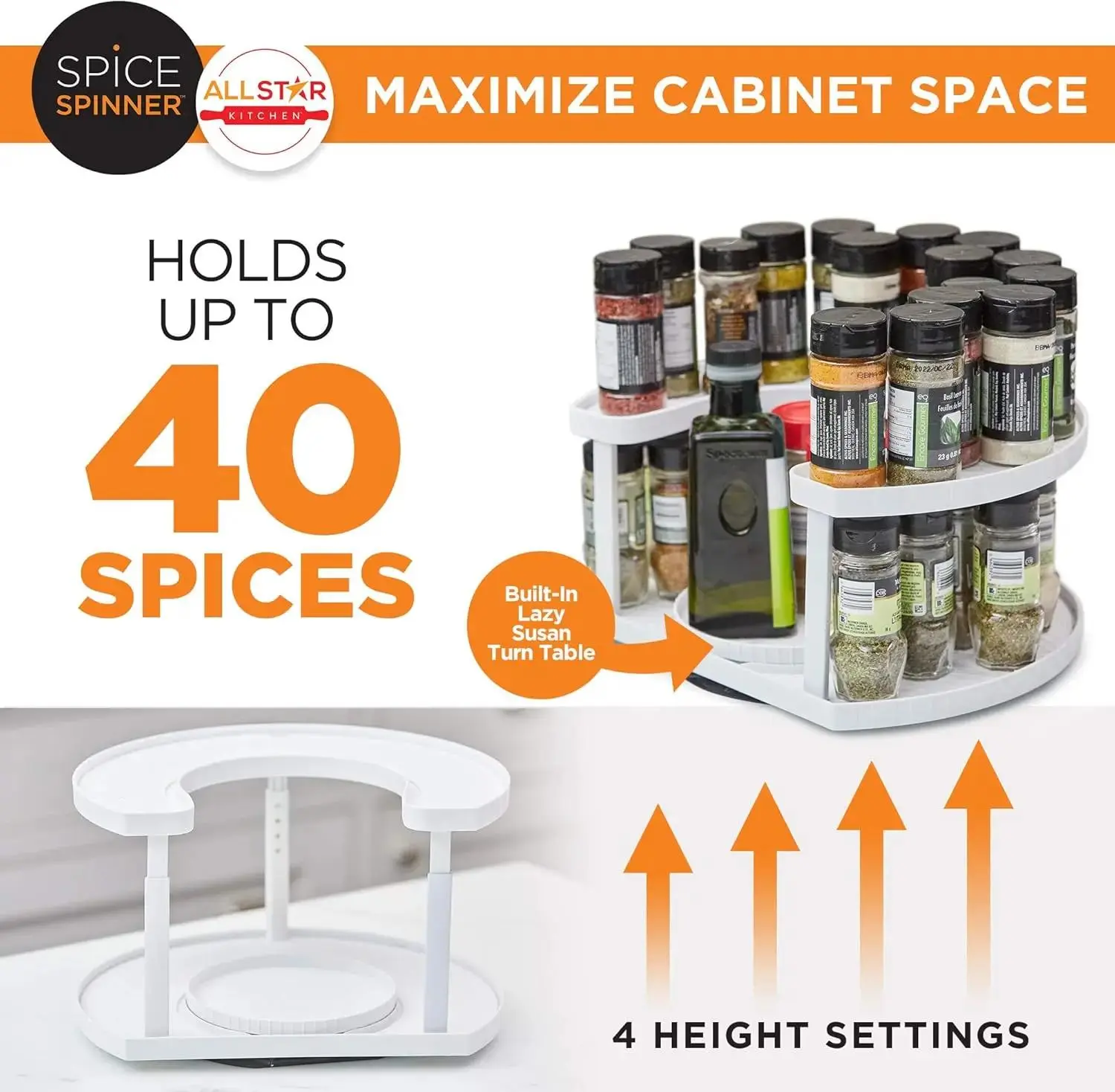 Spice Spinner Two-Tiered Spice Organizer & Holder That Saves Space, Keeps Everything Neat, Organized & Within Reach With Dual Spin Turntables