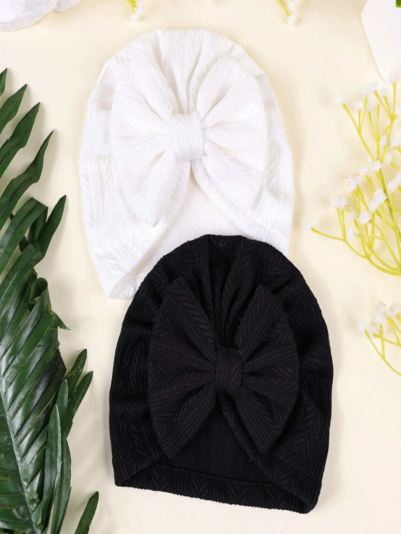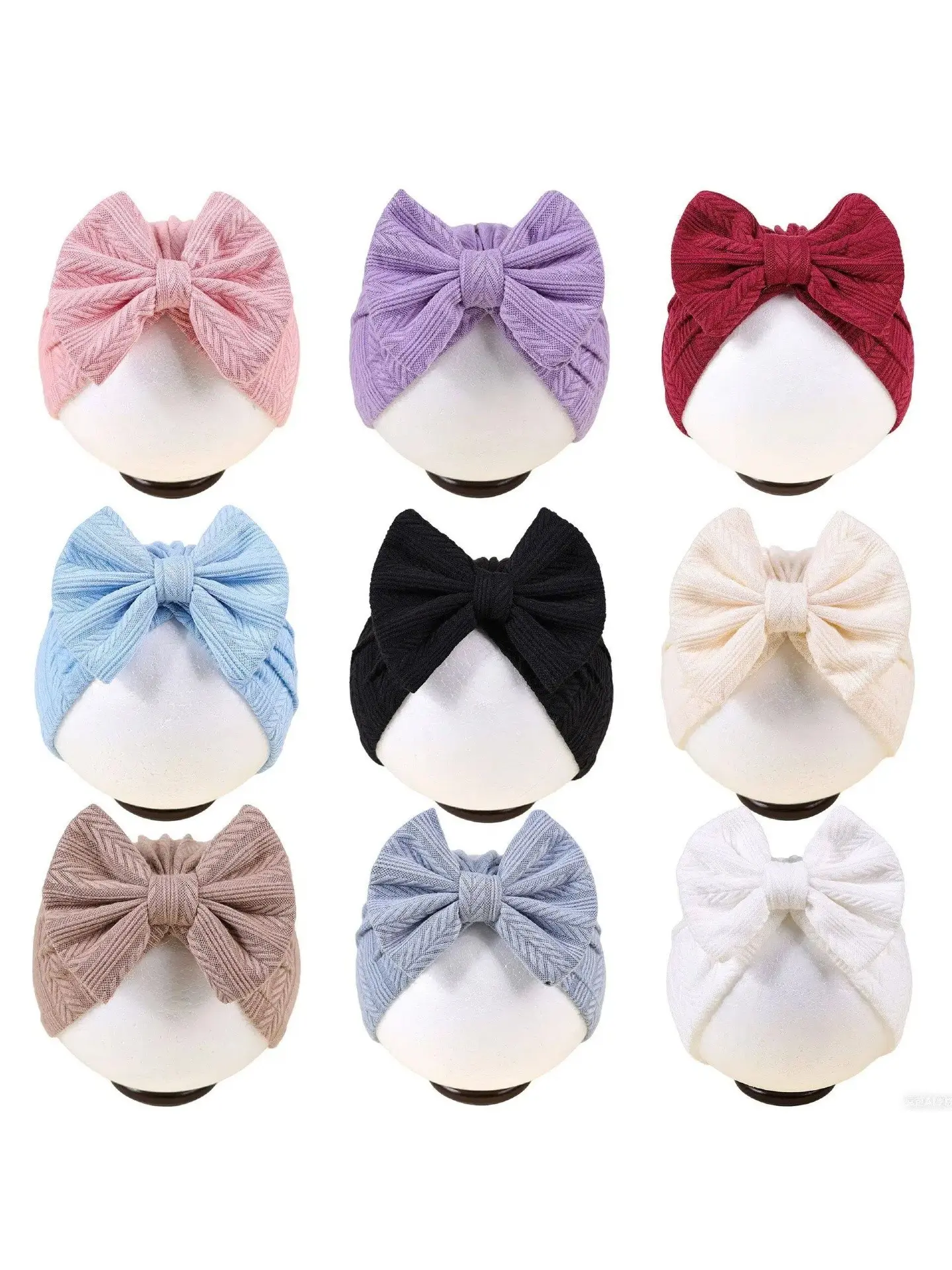 New Cute Baby Solid Color Bowknot Hat, Infant Bonnet Cap, Butterfly Knot Hats, Multi-Color Options, Casual Fitted Style, All Seasons