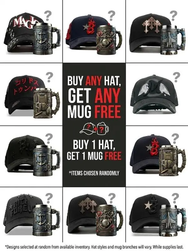 ✨ Buy 1 Streetwear Cap, Get 1 Military Mug Free! This exclusive deal from Barbas Hats & 31 Hats is perfect for your style and needs. Enhance your look with a trendy streetwear cap and enjoy a free military mug. Ideal for those who appreciate both fashion and functionality. Don't miss out on this fantastic offer.
