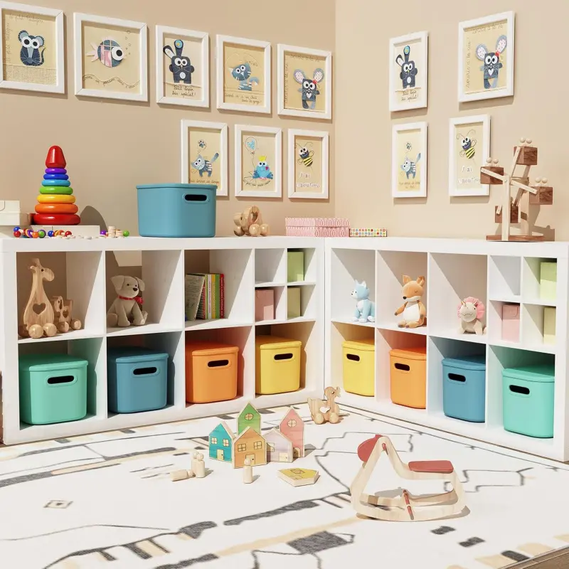 ·The colorful storage bins with lids are for organizing pantry, shelves, cabinet in kitchen, laundry room, bathroom, closet, classroom, a desk, it's easy to grab when you want to store and play with them.