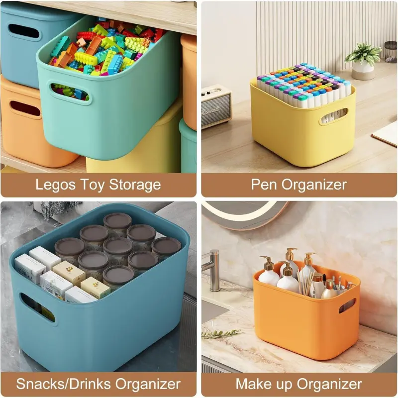 VERSATILE- The colored plastic storage container with handles keep everything nicely separated and organized within your bathroom, kitchen, pantry, laundry, closet, playroom, stackable storage bins are right for craft supplies, art supplies, towels, makeup up, office supplies, snacks, pens, use them for all sorts of things and help you keep organized. HANDY &STACKABLE-Size:9. 85"(L)x6. 9"(W)x5. 7"(H), ORGIDOL storage container for organizing are stackable and nestable,help maximize storage space, it's easy to grab when you want to store and play with them, to de-clutter your laundry room and hide stuff away, these colored bins are very versatile, and can be used to organize things in all areas of a home. REDUCE CLUTTER-Easy to label, this storage container for shelves are slim and tall which makes them convenient for the smaller space on your shelves, these storage bins are for organizing pantry, shelves, cabinet in kitchen, laundry room, bathroom, closet, classroom, a desk, keep everything clean and sort together. BUILT IN HANDLE & LID-The colorful storage bins with lids built in handles for easily take out and slide back from the shelves, just pull it out with the hole as handle and take out what you need and slide back, make it easier to grab without possibly tipping things over, removeable lid can be opened and put back easily,keep the contents of the box dry, clean and away from dust and cats. DURABLE & ENJOYABLE-Our colorful plastic bins for shelves made of sturdy, slightly flexible plastic that it won't break easily, the corners are rounded-no corners to hurt little ones, wash them with soap and water, the storage containers for classroom are just right for containing various laundry products, bags of loose leaf teas, nail supplies, sewing supplies, bathroom essentials, whatever you need them for, if you have any problems, pls feel feel to contact us.