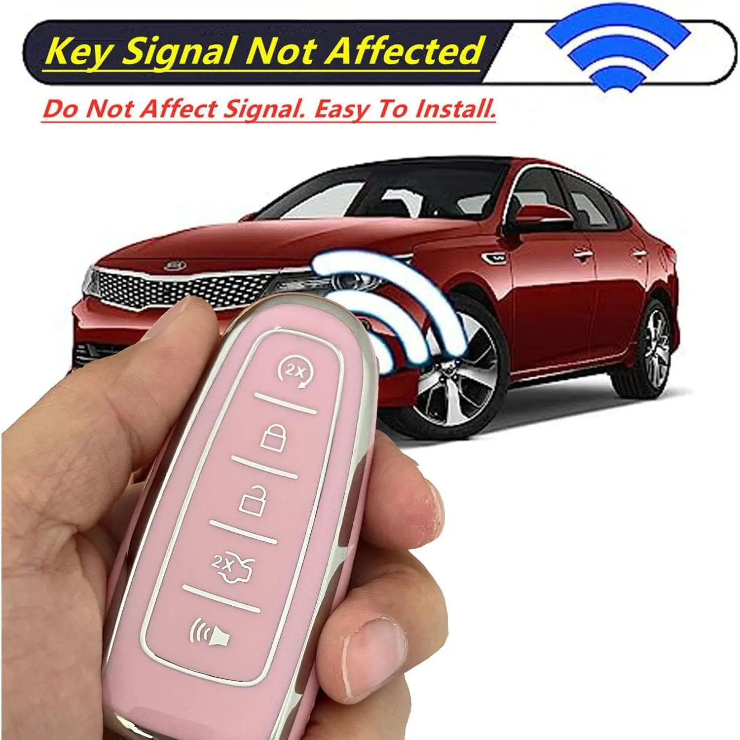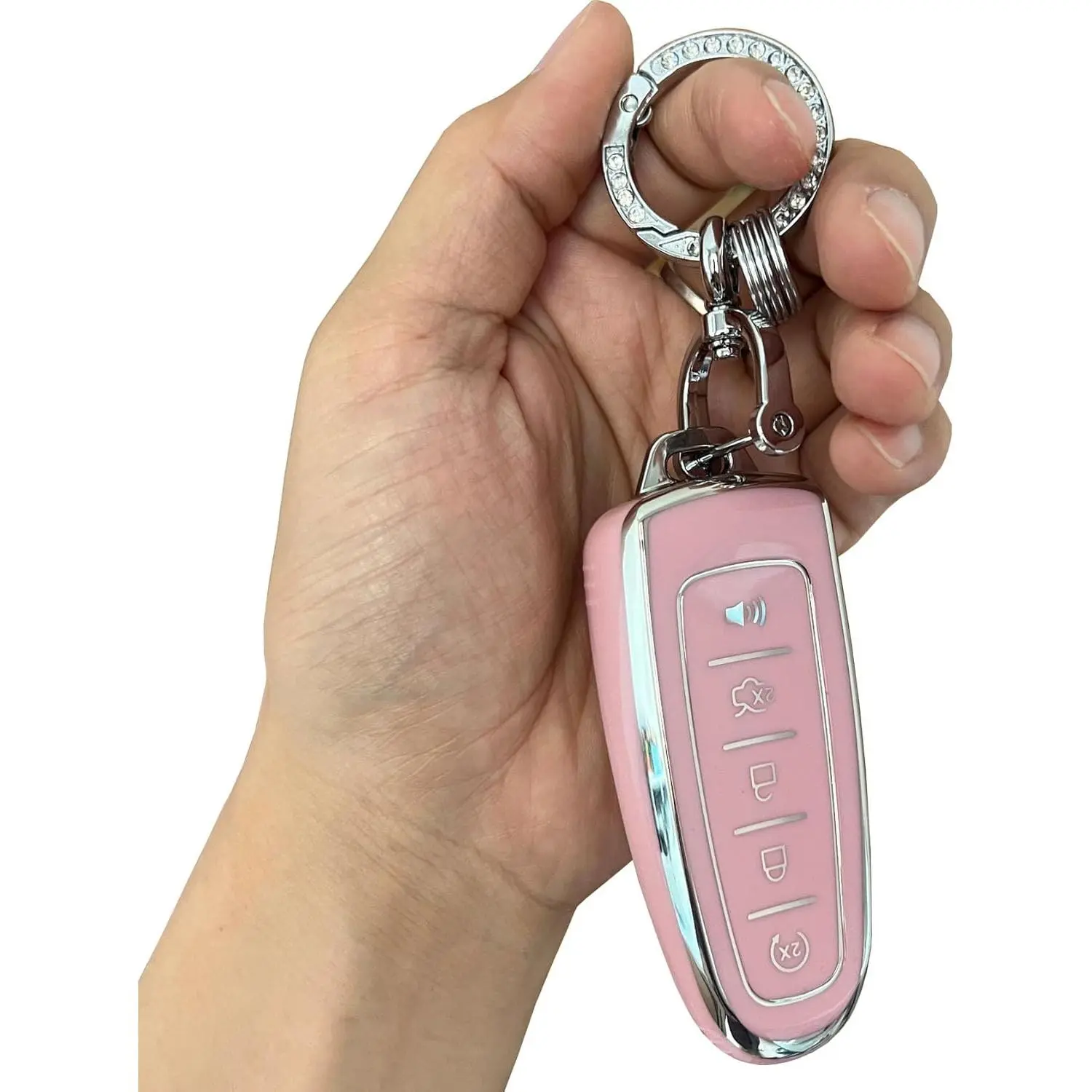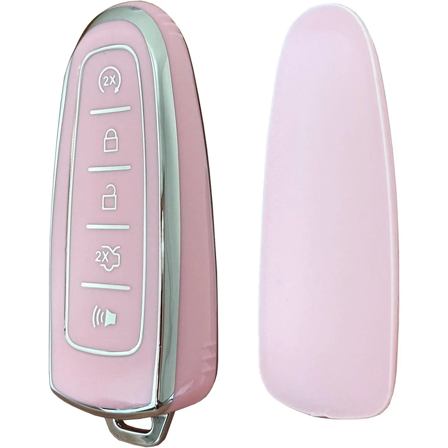 Keyless Entry Systems for Ford Key Fob Cover Fit for Ford C-Max Edge Escape Expedition Explorer Flex Focus Taurus Lincoln MKS MKT MKX Navigator (Pink-Silver)