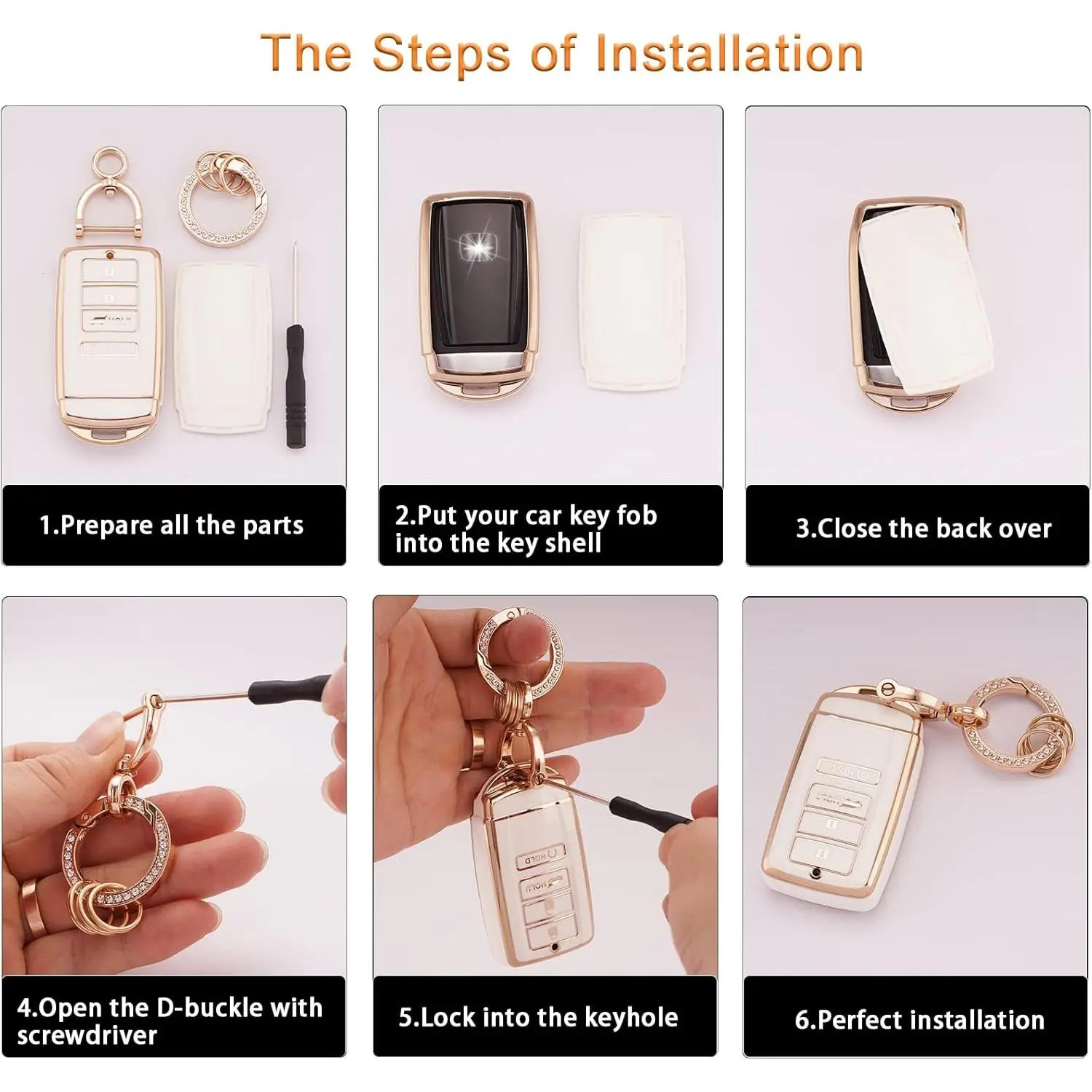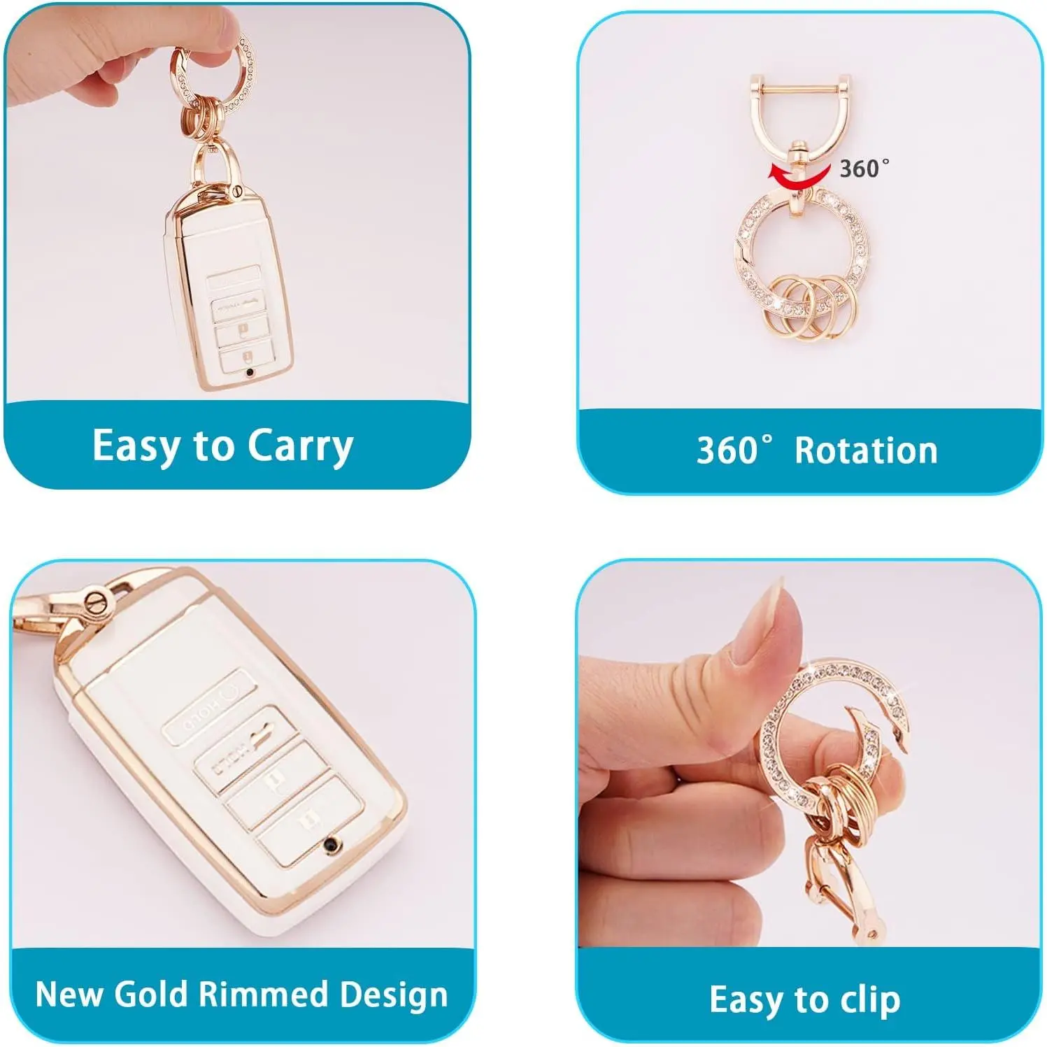The car key cover is plated with gold trim, which is stylish and pretty.