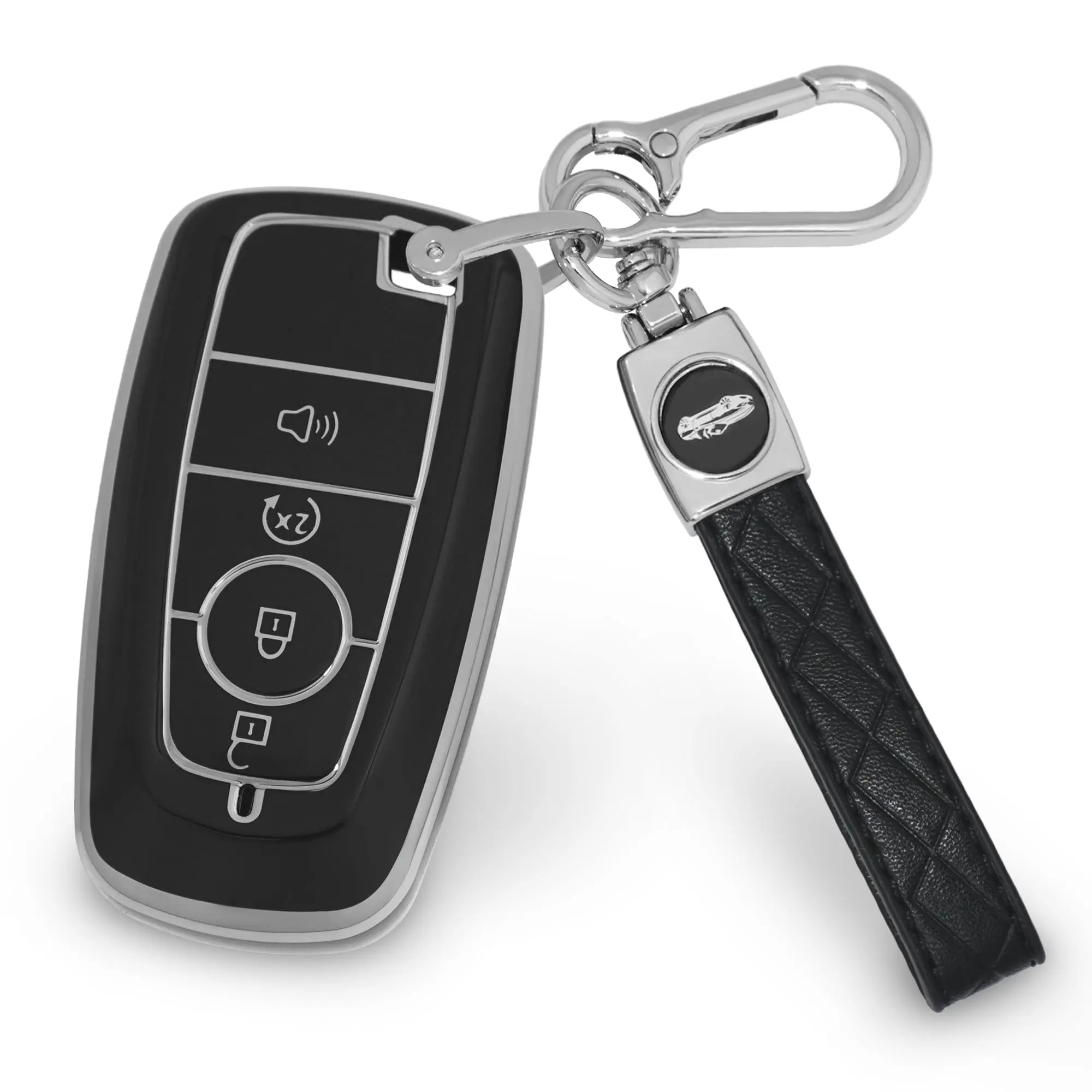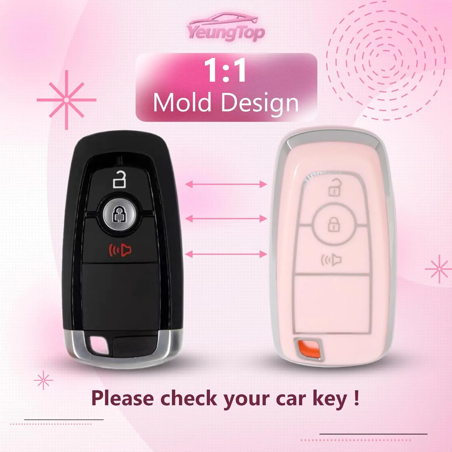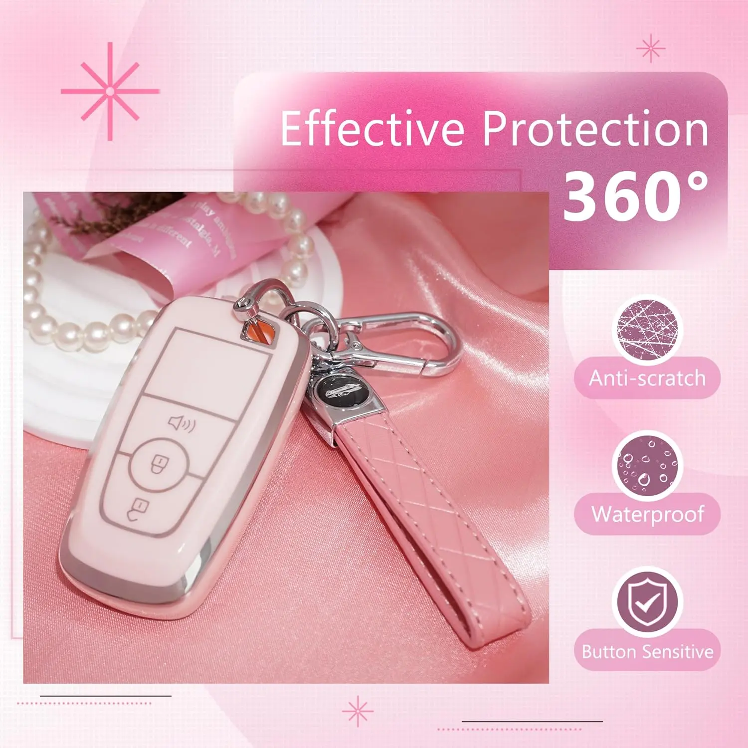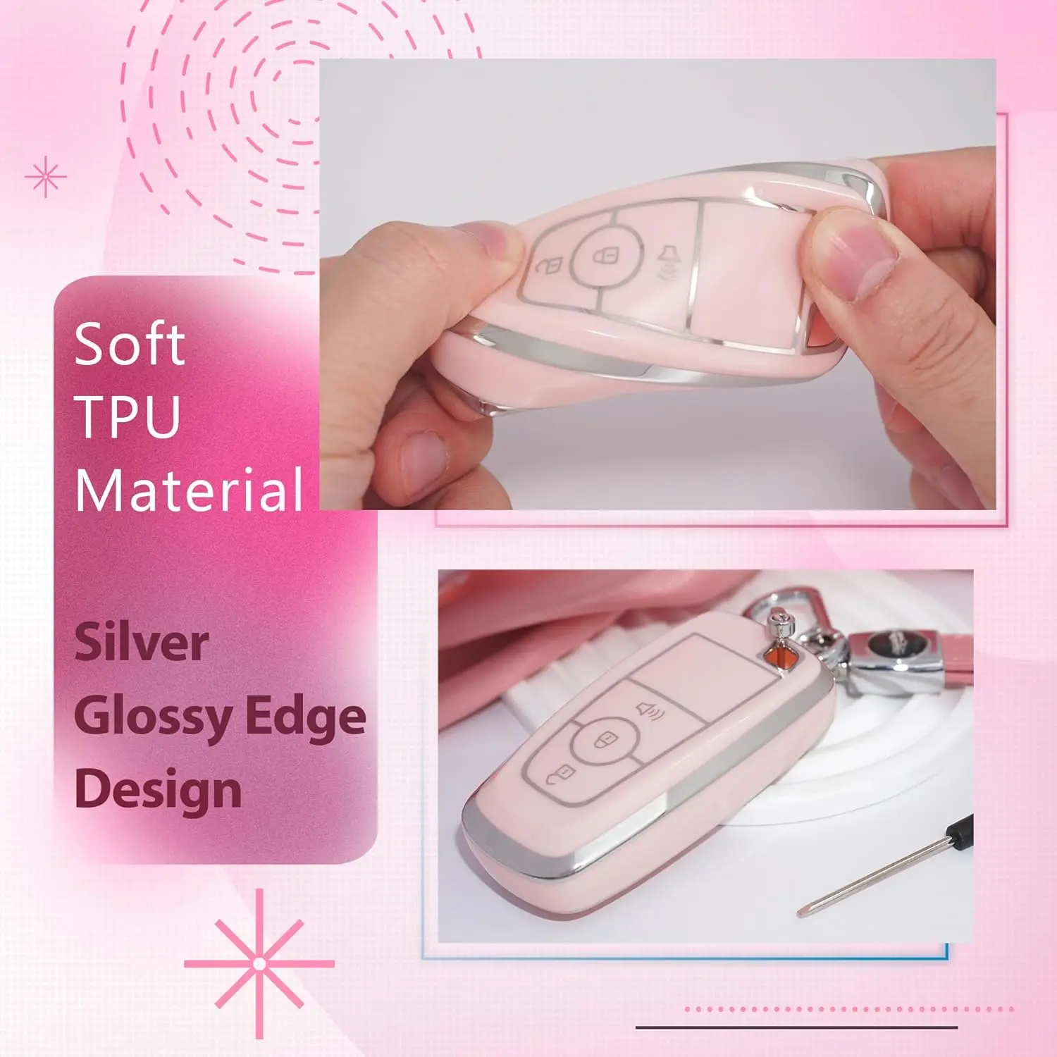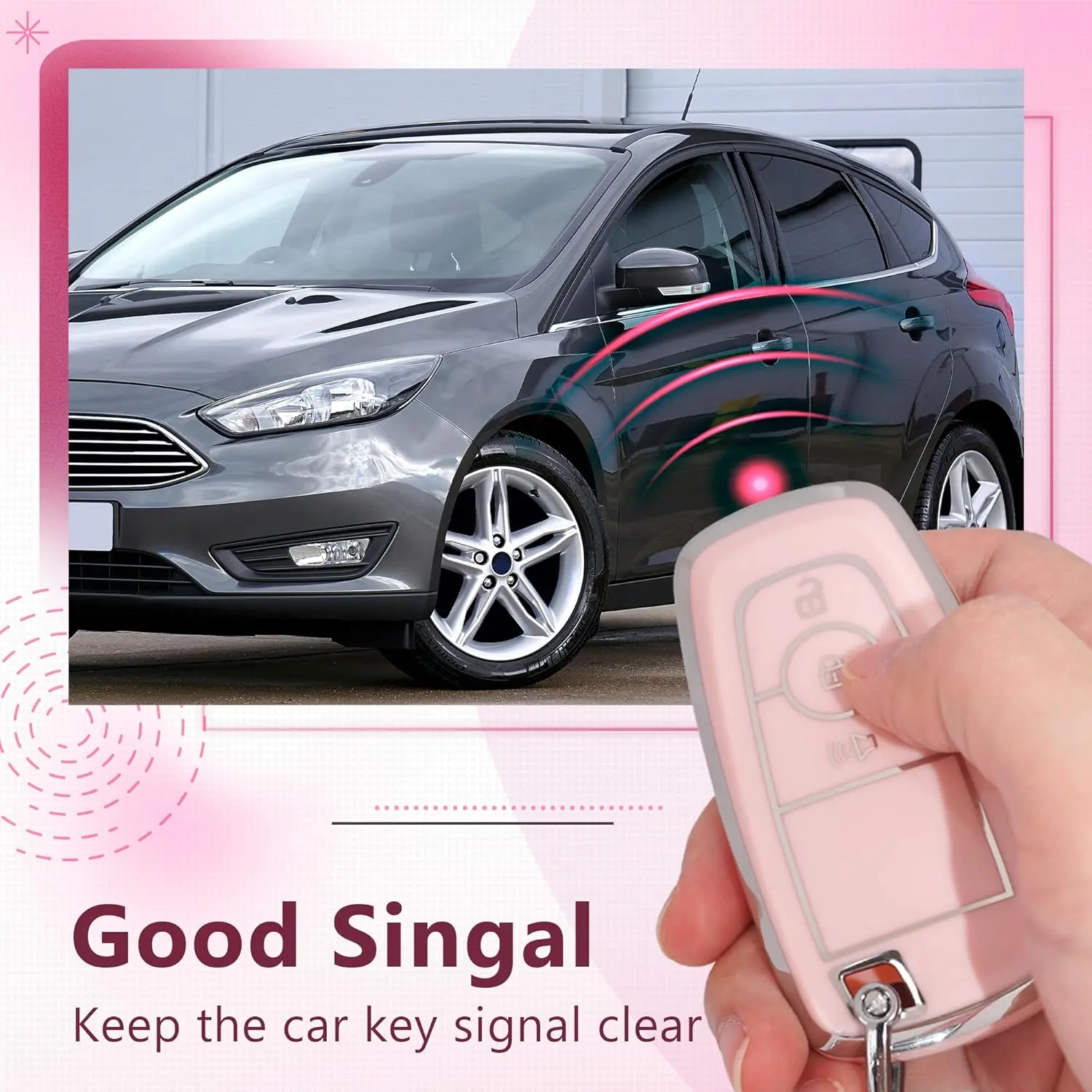 for Ford Key Fob Cover, TPU 3 Buttons Key Case Shell Full Protection for Ford Explorer Bronco Fusion Edge Sport Escape Bronco F150 Pink Car Key Cover with Keychain
