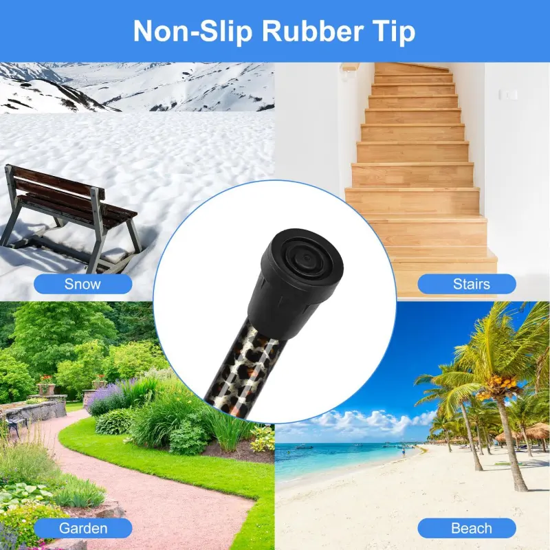 The tip is made of sturdy TPR anti-slip material, providing traction and stability; it could be replaced to other types of cane tips to meet various requirements