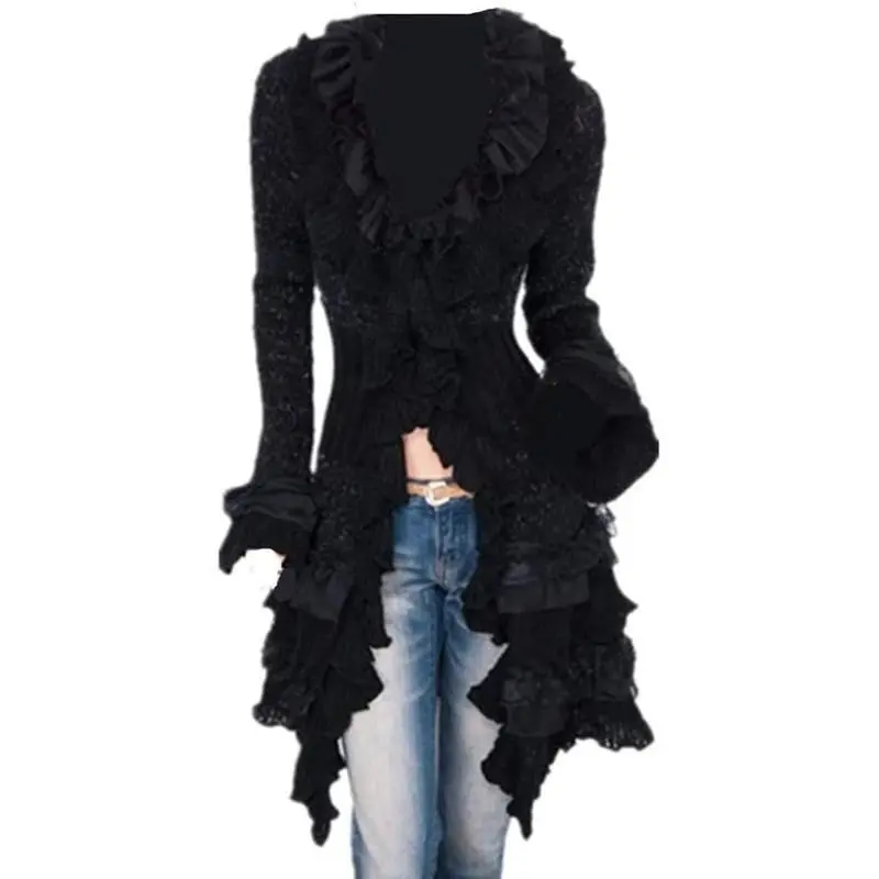 ??DarkRomanceCardigan:YourNewGoth-ChicObsession?? Hey,edgyqueen!??Let��schataboutthecardiganthat��sabouttomakeyourwardrobefeellikeagothicfairytale�Cthisblack,ruffled,asymmetrical masterpiece ??The"DramainEveryStitch"Vibe?? off,that silhouette !It��slikeawaterfallofrufflesandtexture�Csodramatic,sowitchy-chic.??��?Thefittedwaist?Accentuatesyourcurvesinalltherightways,makingyoufeellikeagothicprincess.Thelongsleeveswithflaredcuffs?Perfectforthat"I��mabouttocastaspell-orjustordercoffee"energy.Andtheall-blackeverything?Timeless,edgy,and so you. ??SlayEveryOccasion,Darling?? Headingtoaconcert???Throwthisoverabandtee�Cyou��llbethe"coolestgothinthepit."Goingtoafancydinner?Pairitwithalacedress�Csuddenly,you��rethemysteriousguesteveryone��stalkingabout.Evenacasualdayout?Wearitwithjeans(likethebabeinthepic!??)andboots�Cyou��llbeserving"effortlessdarkacademia"realness. ?WhyThisCardiganWasMadeforYou? It��sunique�Cnobasicknitshere,justyouandyourloveforallthingsdarkandbeautiful.??It��sversatile�Cdressitup,dressitdown,wearittoaritual(orjustabrunch).It��s dramatic �Cshouldmakeastatement,andthiscardiganisshouting"I��mamood"fromtherooftops.Plus,thefabricisthickandcozy�Cperfectforthose"cold,butstillwannalookcool"days. Readytoembraceyourinnergothicgoddess?Addthiscardigantoyourcartandgetreadytoturnheads(andcastsomestylespells).??