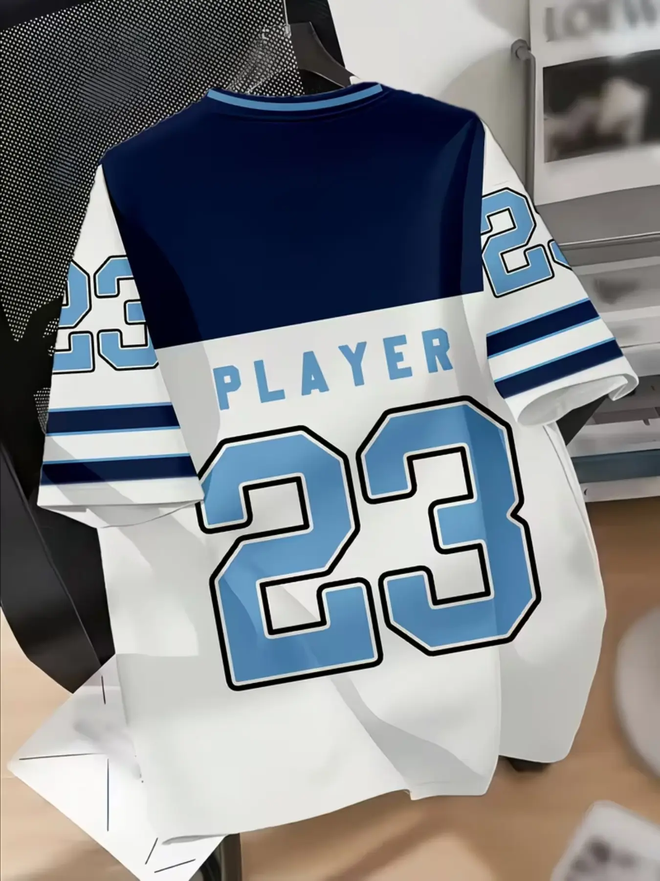 Men's New Casual Round Neck T-Shirt, Chicago Word Design, 32 Number Pattern, Polyester Knit Fabric, Stretchy, Soft Breathable, Outdoor Comfort