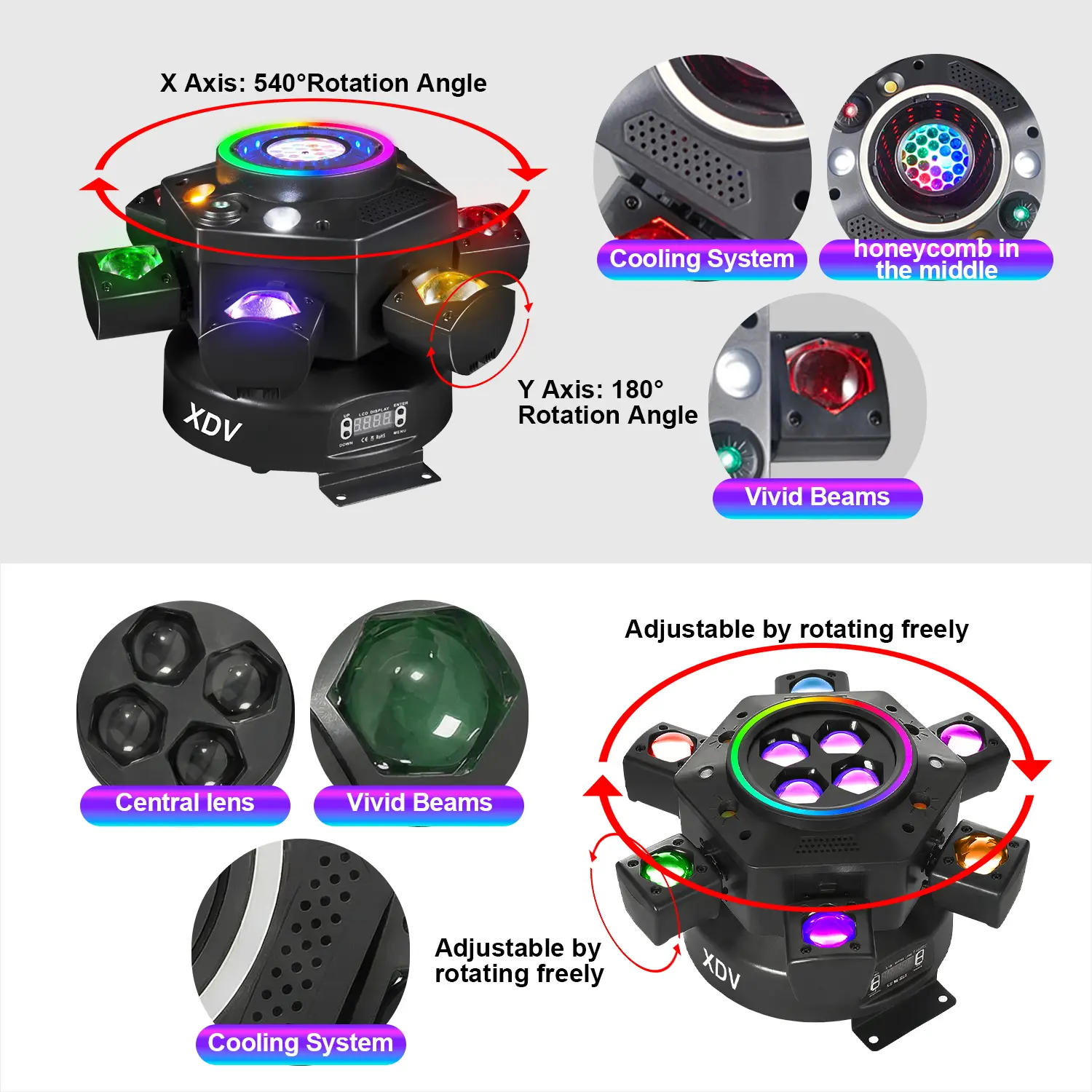 #MovingHeadLight #DJLights #PartyLight #StageLight #SoundActive #RGBW #BeeEyeLight #XDV
