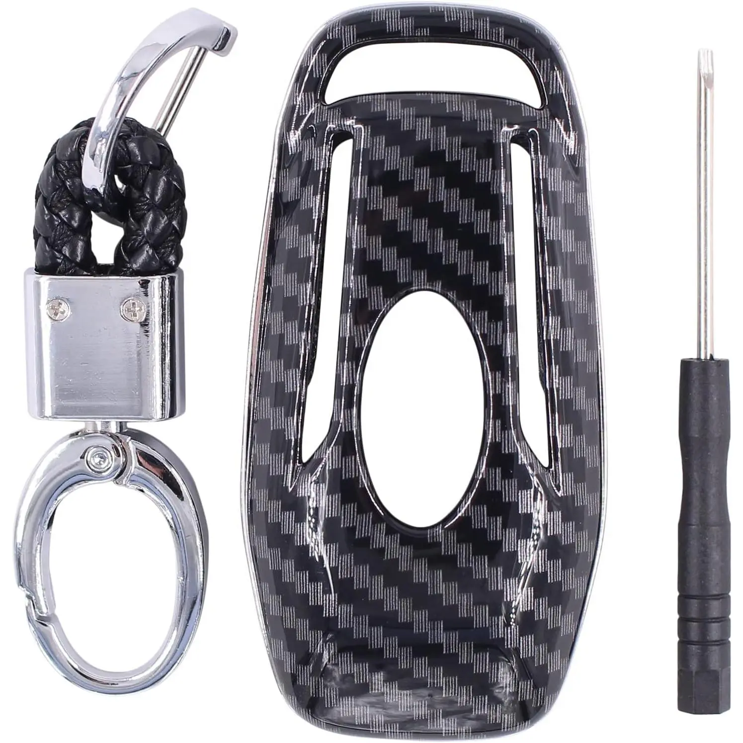 Carbon Fiber Smart Remote Key Fob Case Cover with Keychain