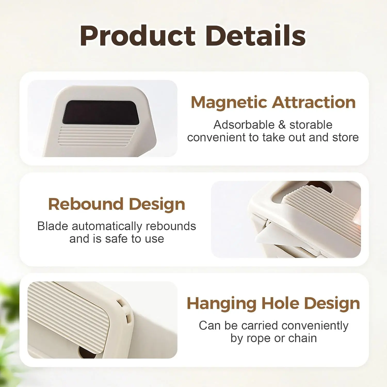 ·【Convenient Magnetic Storage】The magnetic box cutter securely attaches to fridges or toolboxes via its built-in magnet, allowing easy access for quick package opener needs or utility tasks, ensuring this retractable tool is always within reach.