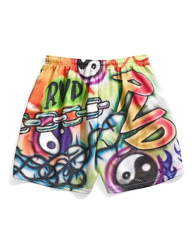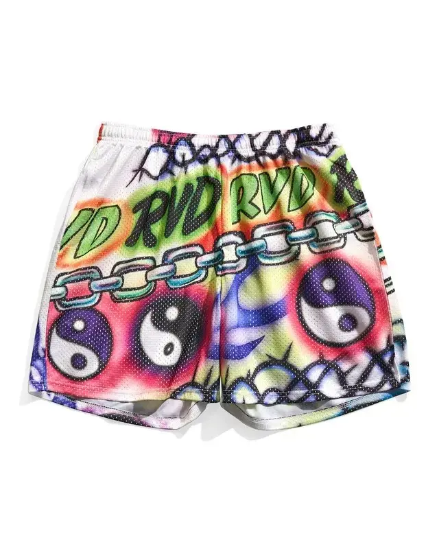 WWE Men Shorts Streetwear Casual Summer Gym Sport Loose Fit Unisex Comfortable Outfit with Graffiti RVD Chain and Yin Yang Graphic Trendy Wrestling Fan Clothing, WWE Mesh Shorts