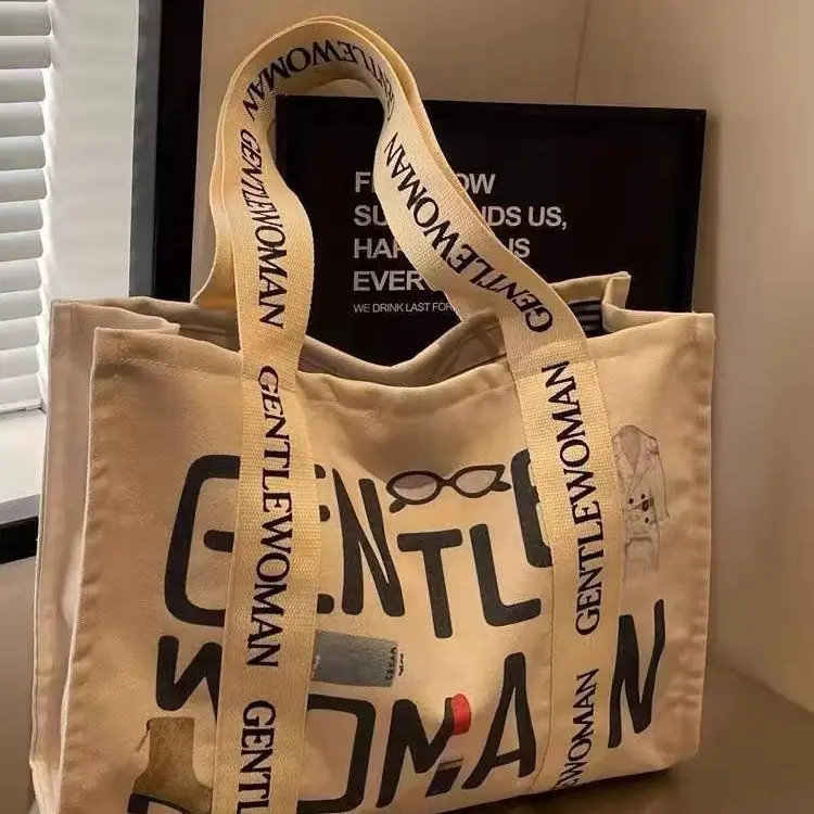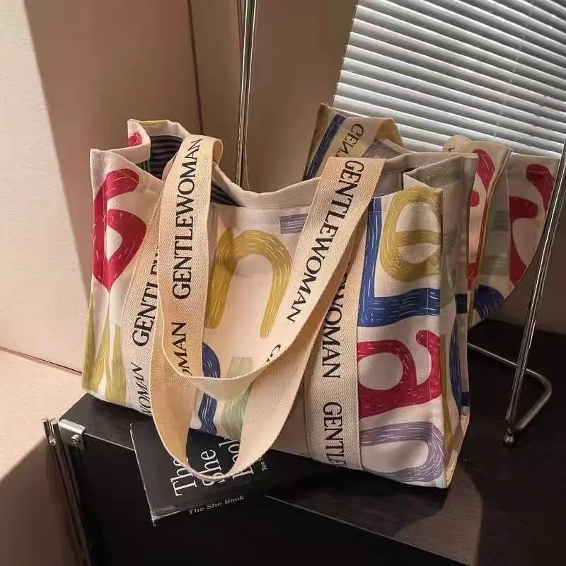 Summer single-shoulder canvas bag for women, large-capacity handbag for going out, versatile tote bag for students, class, and commuting