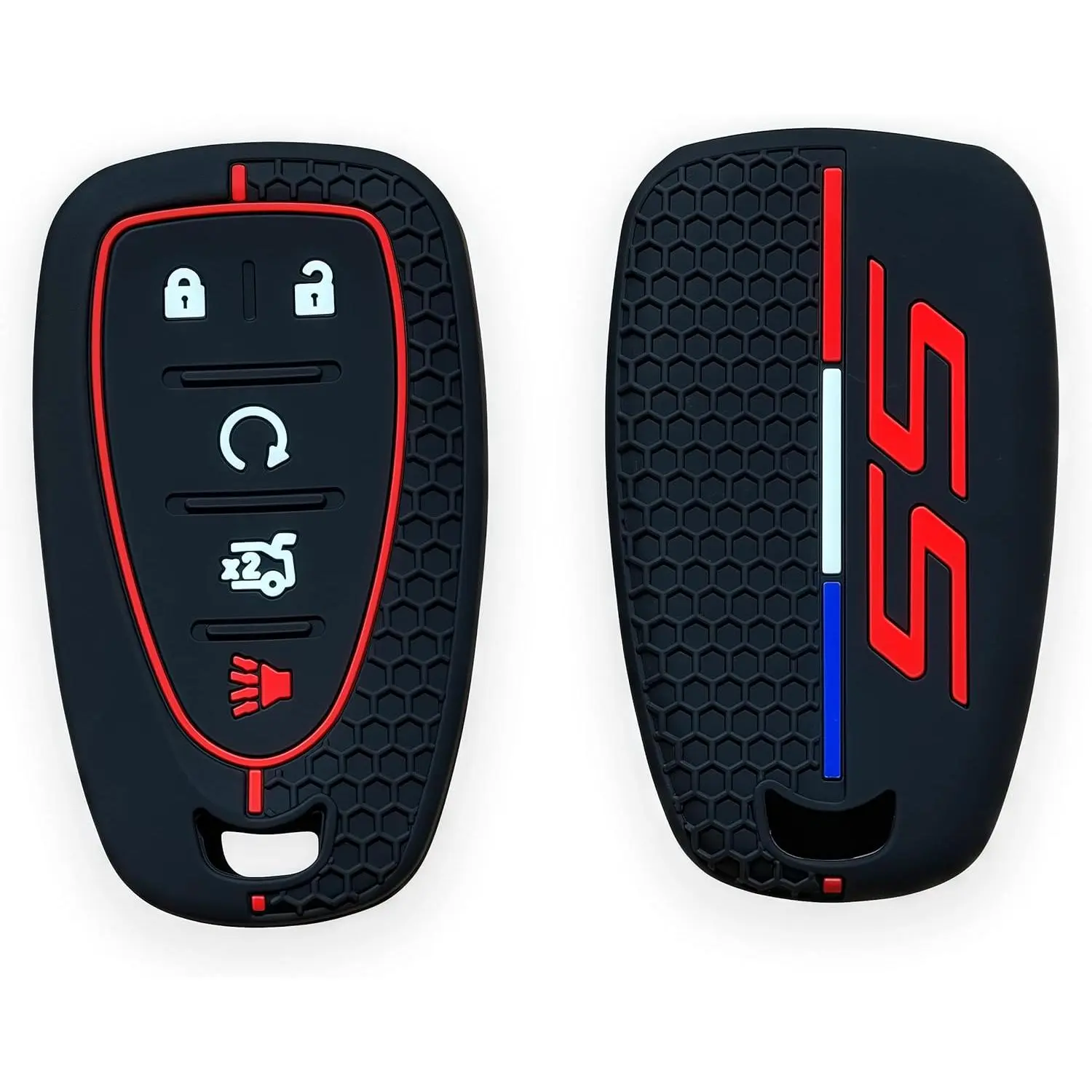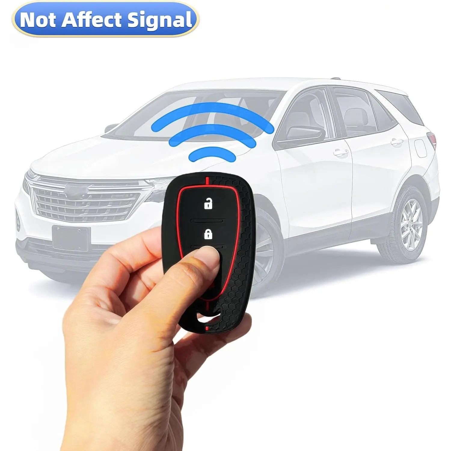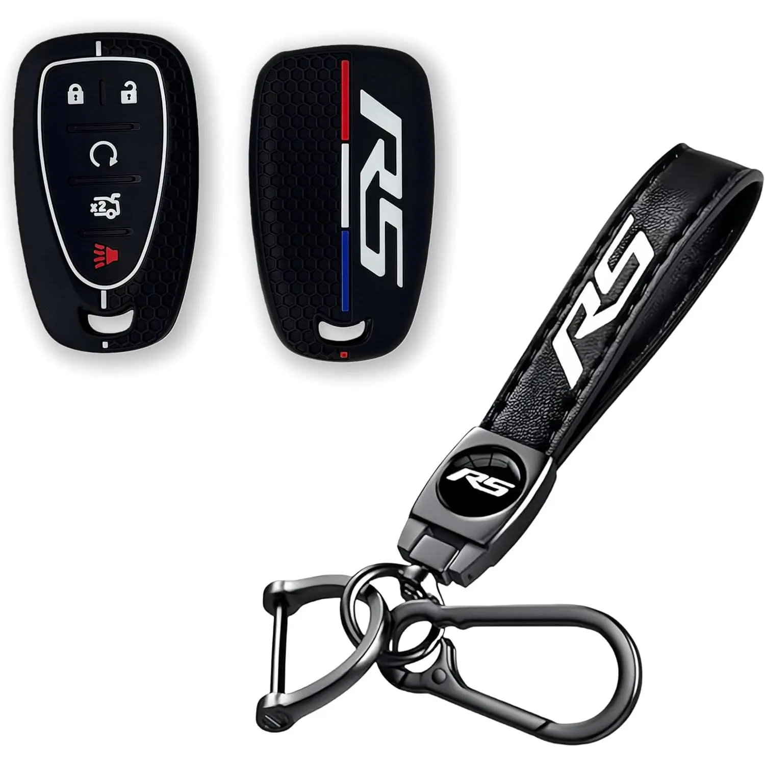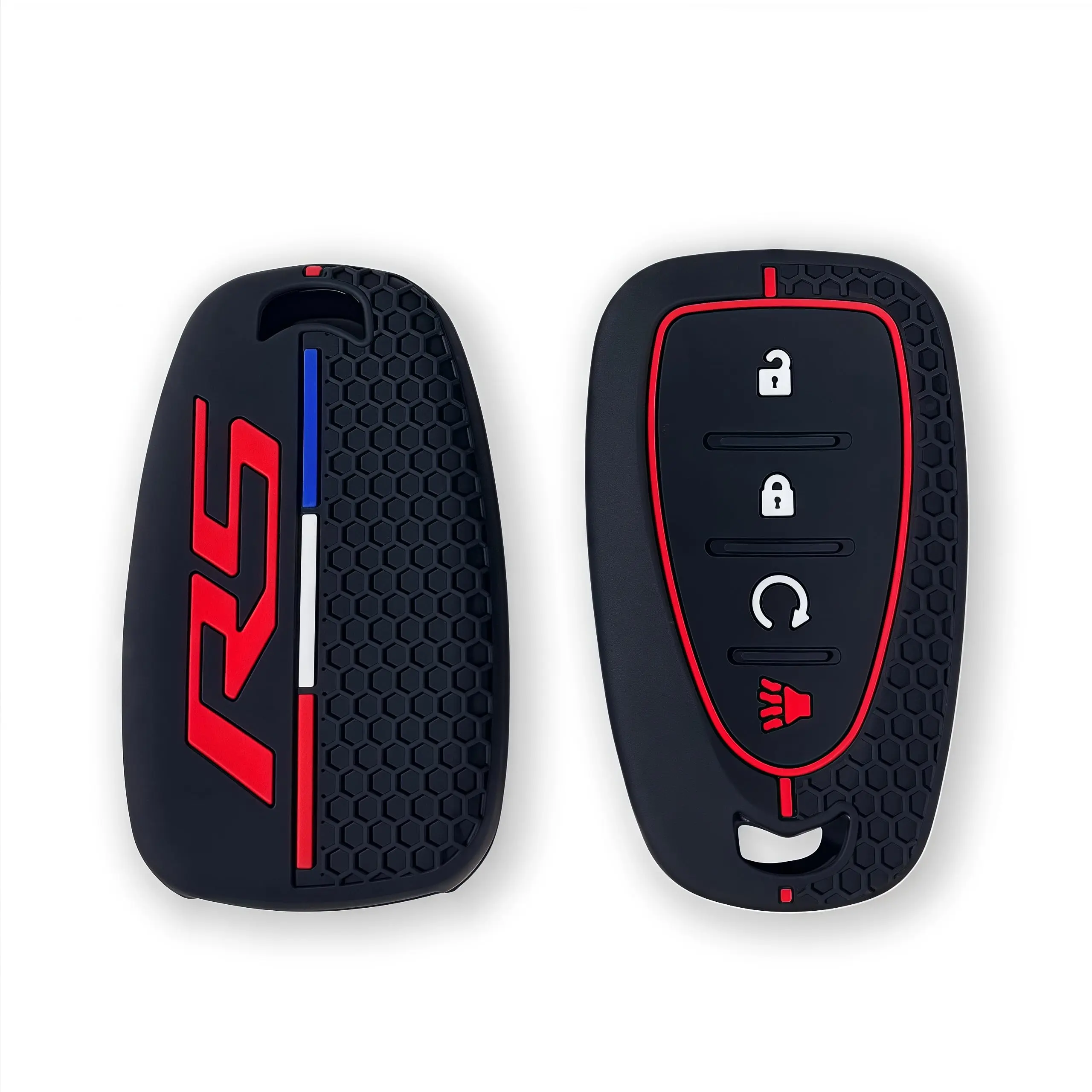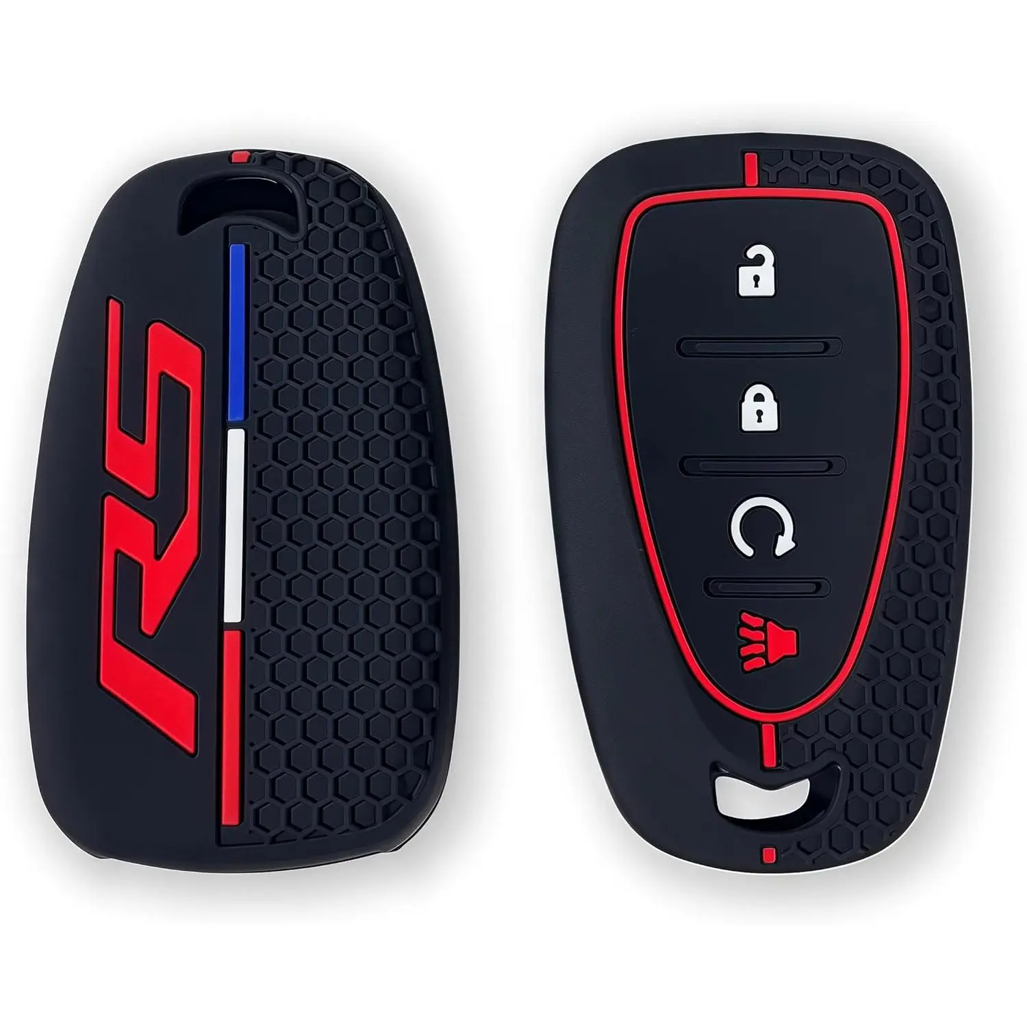 2PCS 4 Button Black Silicone Smart Key Fob Shell Cover Protector Remote Holder Compatible with Chevy Blazer Camaro Bolt Equinox Traverse Trax Trailblazer Malibu Volt Cruze Accessories (4B-REDRS)
